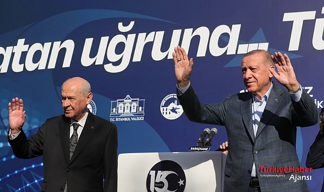 “ÜLKEMİZİ BİR KEZ DAHA OYUN DIŞINDA BIRAKMAK İSTEYENLERE ARADIKLARI FIRSATI SUNMAYACAĞIZ”Cumhurbaşkanı Erdoğan, geçen 20 yılda eğitimden sağlığa, ulaşımdan enerjiye, sanayiden spora, her alanda kazandırdıkları güçlü altyapının üzerinde Türkiye'yi dünyanın en büyük 10 ekonomisinden biri hâline getirmek için var güçleriyle çalışacaklarını dile getirdiİstanbul'da bir sel afetinin yaşandığını hatırlatan Cumhurbaşkanı Erdoğan, "Peki sel afetinde acaba sorumluları neredeydi? Aynı şekilde Ankara'da neredeydi? Kardeşlerim bunların hesabını 2023'te sandıklarda sormaya var mıyız? Fakat durmak yok, çok çalışacağız. Cumhur İttifakı olarak bu hesabı sormaya hazır mıyız? Mesele bu. Çünkü bizim soracak hesabımız var" şeklinde konuştu.Cumhurbaşkanı Erdoğan, demokrasi ve kalkınma devrimlerinin en büyük şahidinin İstanbul olduğunu dile getirerek, Türkiye'yi 81 vilayeti ve 85 milyon vatandaşıyla muasır medeniyet seviyesinin üzerine çıkarma hedeflerinden en küçük bir taviz vermeyeceklerini söyledi.Cumhurbaşkanı Erdoğan, Cumhuriyet'in 100. kuruluş yıl dönümünü, genç devletin bir asrını geride bırakmanın ötesinde üç kıta, yedi iklimi kuşatan medeniyet davalarının inkişafının da sembolü hâline getireceklerini vurgulayarak, şöyle devam etti: "Buna hazır mıyız? Dünyadaki siyasi ve ekonomik güç odaklarının yeniden yapılandığı bir dönemde, ülkemizi bir kez daha oyun dışında bırakmak isteyenlere, aradıkları fırsatı kendi ellerimizle sunmayacağız. Şimdi hazır mısınız? Bir olacağız, iri olacağız, diri olacağız, kardeş olacağız, hep birlikte Türkiye olacağız. Kardeşlerim, 2023 imtihanını da başarıyla vererek, bu kutlu menzile doğru yolumuza devam edeceğiz, kadınıyla, erkeğiyle, genciyle, yaşlısıyla. Ben sizin bu imanınıza, bu inancınıza, bu kararlılığınıza güveniyorum. Rabbim bizleri bu yolda daim eylesin. Bunun için şimdi öyle bir ses verelim ki doğudan batıya, kuzeyden güneye, dünyada duymayan kimse kalmasın. Sadece duymakla kalmasınlar, dostlarımız sevinçten, düşmanlarımız korkudan tüm hücreleriyle titresinler."