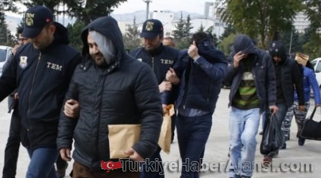 Antalya Emniyet Müdürlüğü Terörle Mücadele Şube Müdürlüğü (TEM) ekipleri tarafından Antalya merkezli Adana ve Osmaniye’de yapılan operasyonlarda IŞİD üyesi oldukları gerekçesiyle 8 kişi gözaltına alındı. Pazar sabahı TEM ekipleri tarafından düzenlenen eş zamanlı operasyonda gözaltına alınan 1’i Suriyeli 8 kişi, Antalya’ya getirildi. İfadeleri alınan 8 şüpheli, ’terör örgütü üyesi olmak’ suçlamasıyla adliyeye sevk edildi.AFYONKARAHİSAR’DA 6 GÖZALTIAfyonkarahisar’da terör örgütü IŞİD’e yönelik düzenlenen operasyonda 6 kişi gözaltına alındı.Edinilen bilgiye göre, güvenlik güçleri tarafından Afyonkarahisar’da terör örgütü IŞİD’e yönelik düzenlenen operasyonda biri Suriye uyruklu, 5’i Türk vatandaşı toplam 6 kişi gözaltına alındı. İlk belirlemelere göre gözaltına alınan Suriye uyruklu şahsın Afyon Kocatepe Üniversitesi’nde öğrenci olduğu belirtildi. Afyonkarahisar Adliyesi’ne sevk edilen zanlıların savcılıktaki sorguları sürüyor.