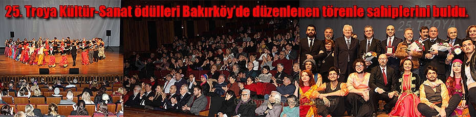 Bakırköy Belediyesi’nin katkılarıyla düzenlenen 25. troya kültür-sanat ödülleri Bakırköy’de düzenlenen törenle sahiplerini buldu. 25. Troya Kültür-Sanat Ödülleri Töreni, bakırköy Belediyesi Leyla Gencer Opera ve Sanat Merkezi’nde yapıldı.Ulusal kültürümüzü koruma ve yaşatma amacıyla kurulan Troya Folklor Araştırmaları Derneği, uğraşlarını ve başarılarını çeşitli alanlarda sergileyerek çağdaş, demokratik ve laik; bilim insanı, sanatçı ve kurumlara 25 yıldır ödül veriyor.Sinema ve tiyatro sanatçıları Gülsen Tuncer ve Ender Yiğit'in sunduğu gecede, 12 farklı kategorideki ödüller sahiplerini bulurken Troya Folklor Araştırmaları Derneği'nin halk oyunları ekibi, halk müziği ve seyirlik grubu da, Bakırköylü Sanatçılar Derneği ve Ödül Komitesi Başkanı İlhan Gülek'in hazırladığı "Madenin Türküsü" adlı gösteriyle izleyenlerden büyük alkış aldı.Sanatçı ve akademisyenlerin yanı sıra çok sayıda davetlinin katıldığı gecede, ev sahibi Bakırköy Belediye Başkanı Dr. Bülent Kerimoğlu törenin ilk ödülü olan Atatürkçülük Ödülünü Yazar Sinan Meydan’a verdi. Kerimoğlu, yaptığı konuşmada “Kültür ve Sanatın Başkenti Bakırköy’de böyle bir geceye katkı sağlamanın gururunu yaşıyoruz. İçinden geçtiğimiz bu zor günlerde eğilmeyen, bükülmeyen, Atatürkçü, Cumhuriyetçi yazarlara, akademisyenlere, aydınlara ihtiyacımız var. Bilimsel belgelere dayalı, hiçbir görüşe yandaş olmadan hazırladığı ‘Yüzyılın Lideri’ adlı kitabından dolayı kendisini tebrik ediyorum.” dedi.Atatürkçülük Ödülü’nü alan Sinan Meydan, “Çare Atatürk’tür, gelecek Atatürk’tür. Atatürkçülük Ödülü’nün ne anlama geldiğini biliyor, bu yolda üstlendiğim sorumluluğun bilinciyle bu ödülü Çanakkale’den Afrin’e tüm gazilerimiz ve şehitlerimiz adına alıyorum.” dedi.Çok sayıda halk oyunuyla beraber, halk kültüründen örneklerin sunulduğu gecede, değerlendirme sonucu ödüle değer bulunanlar şöyle oldu:ATATÜRKÇÜLÜK : SİNAN MEYDAN