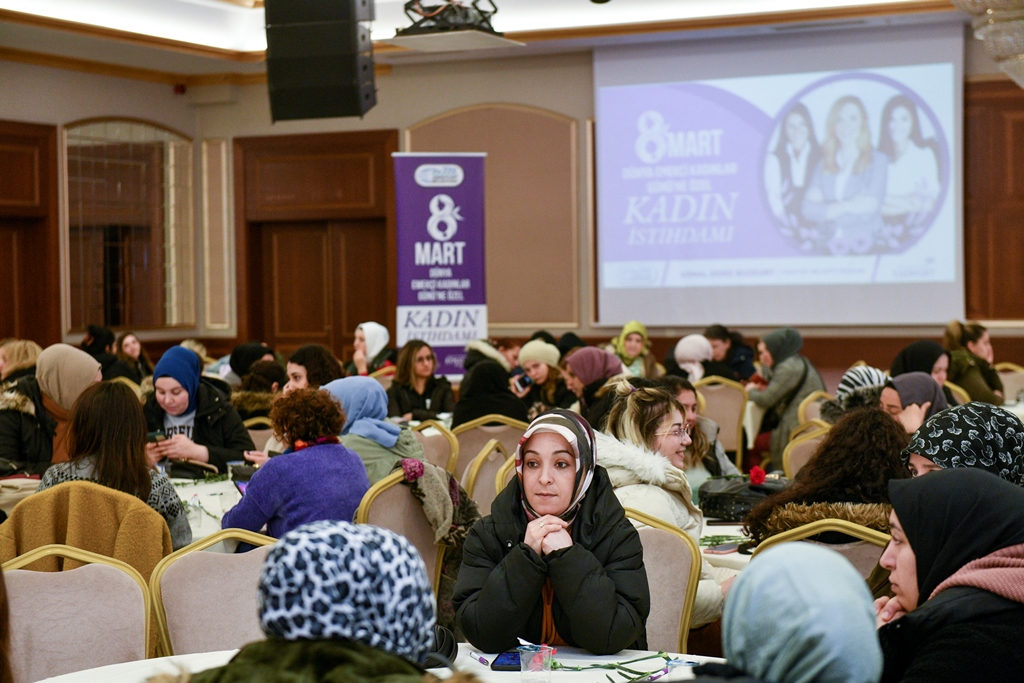 Kadınların ekonomik ve sosyal haklardan eşit bir şekilde faydalanabilmeleri için desteklerini sürdüren esenyurt Belediyesi, 8 Mart Dünya Emekçi Kadınlar Günü’ne özel istihdam fuarı düzenledi. İstanbul’dan 32 ayrı firmanın katıldığı fuarda yüzlerce kadın farklı iş alanlarında görüşme yapma fırsatı bularak, yeteneklerine uygun alanlarda istihdam edildi.8 Mart Dünya Emekçi Kadınlar Günü’nde Esenyurt’ta 320 kadın daha ekonomik özgürlüğüne kavuştu. Kadınların daha fazla iş hayatına katılması için desteklerini sürdüren Esenyurt Belediye Başkanı Kemal Deniz Bozkurt, ilçedeki kadınlara özel istihdam fuarı düzenledi. esenyurt belediyesi İstihdam Merkezi (ESBİM) aracılığıyla Nene Hatun Kültür Merkezi’nde düzenlenen fuara 32 ayrı firma ve yüzlerce kadın katıldı. Firmalarla tek tek görüşme yapan kadınlar kendilerine en uygun işte istihdam edilme fırsatı yakaladı. Gün boyu süren mülakatlarda toplam 320 kadının iş sahibi olurken, katılan firmalara da “Kadın Dostu Firma” sertifikaları verildi.