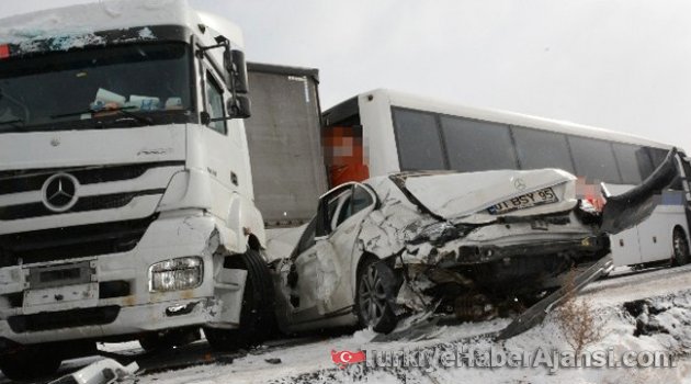 Aksaray-Adana karayolunda tipi ve buzlanma sebebiyle 36 aracın karıştığı trafik kazasında 41 kişi yaralandı.