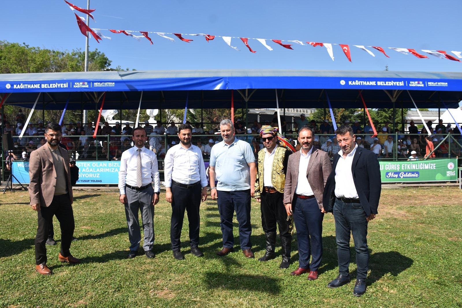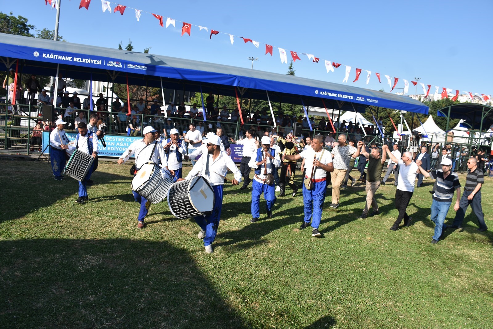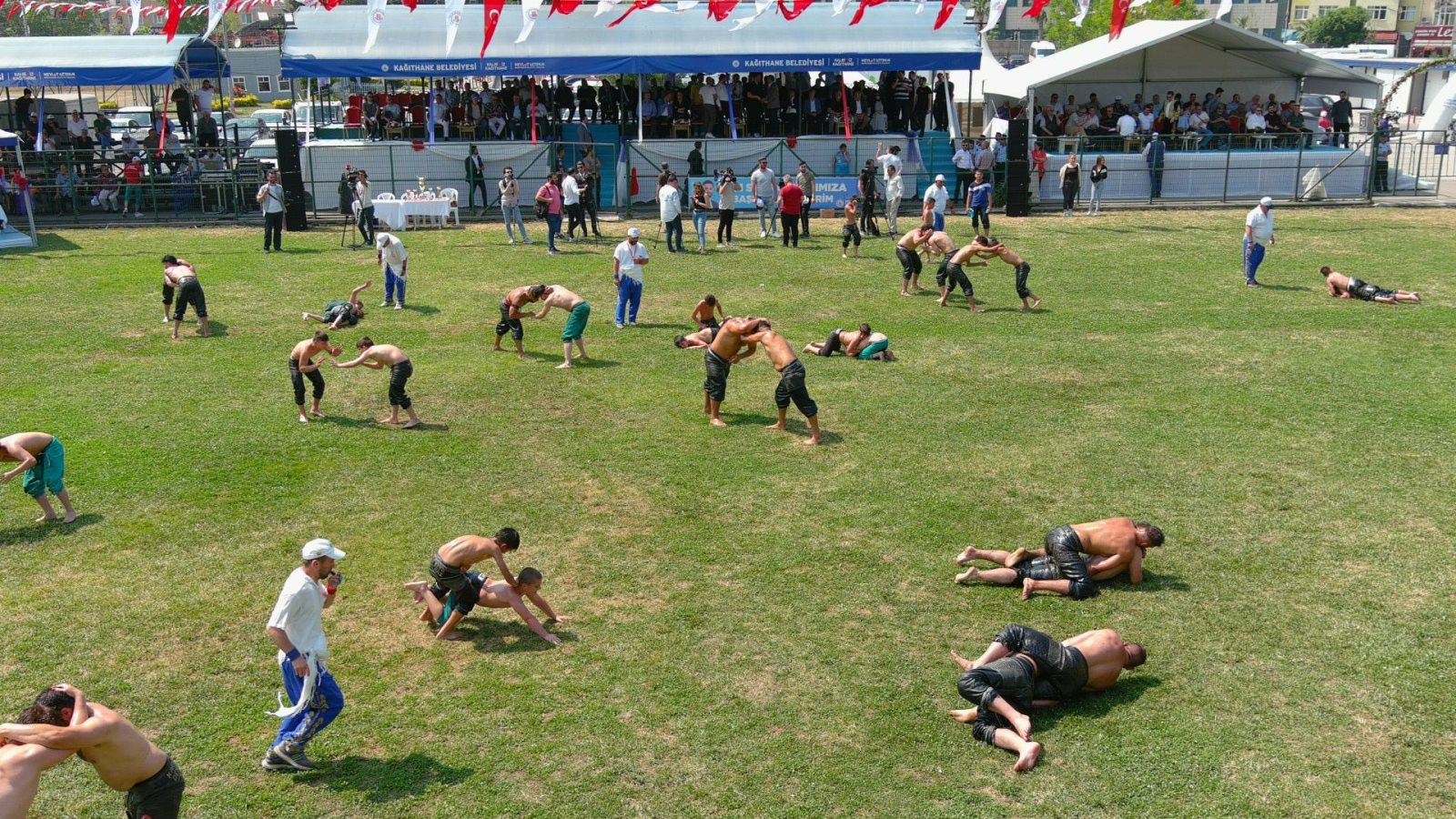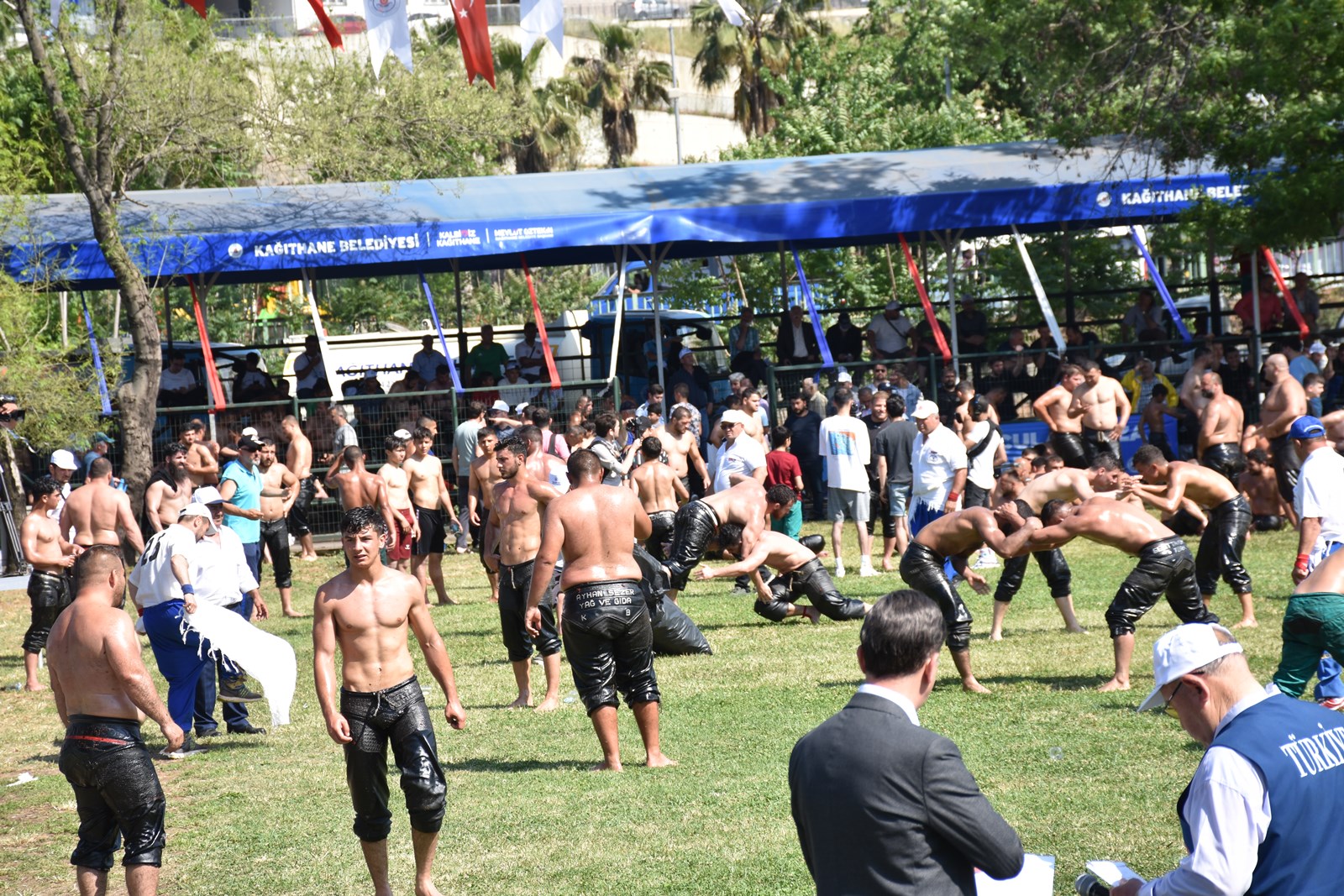 Kağıthane Belediye Başkanı Mevlüt Öztekin’in ev sahipliğinde düzenlenen yağlı güreş festivaline AK Parti İstanbul Milletvekili Hasan Turan, Kağıthane Kaymakamı Tahir Şahin, İstanbul Gençlik ve Spor İl Müdürü Prof. Dr. Burhanettin Hacıcaferoğlu, yurdun dört bir yanından önceki dönem şampiyonları, Ağaları, pehlivanlar ve Kağıthaneliler katıldı.