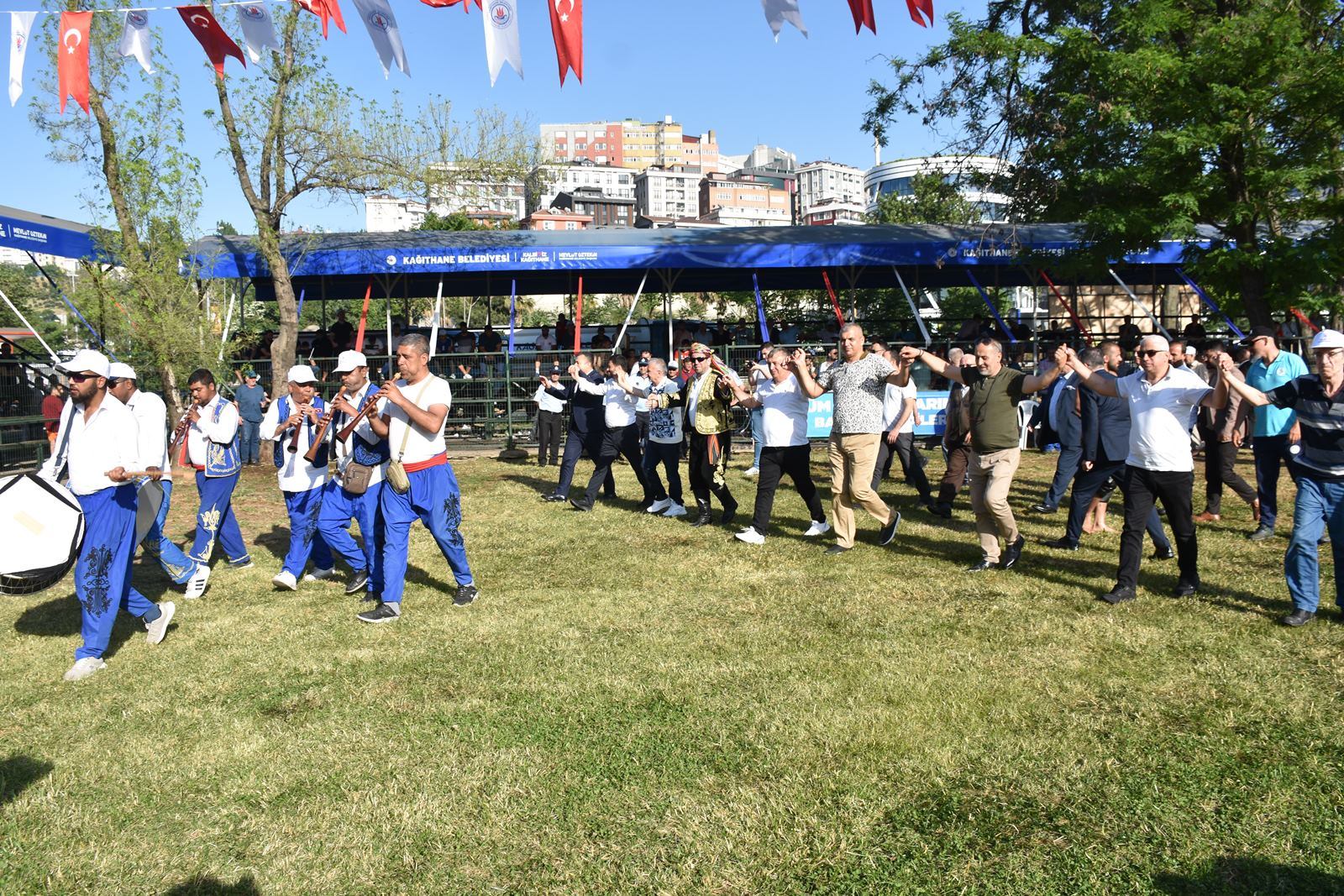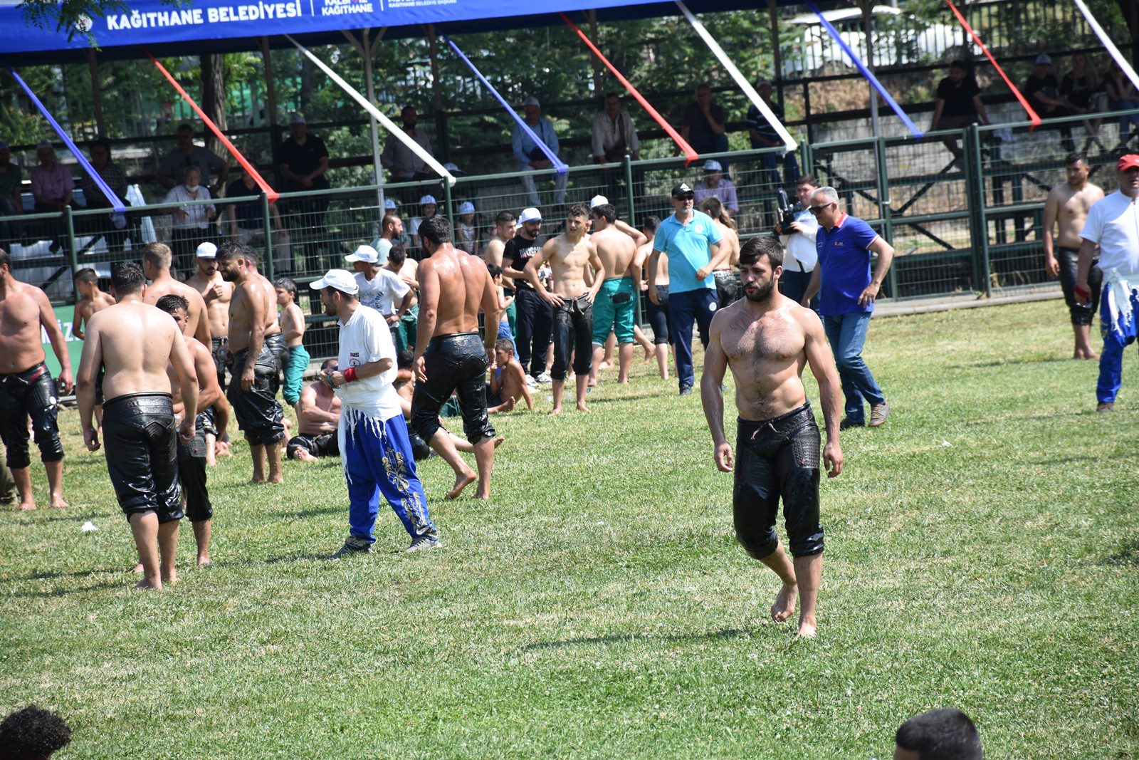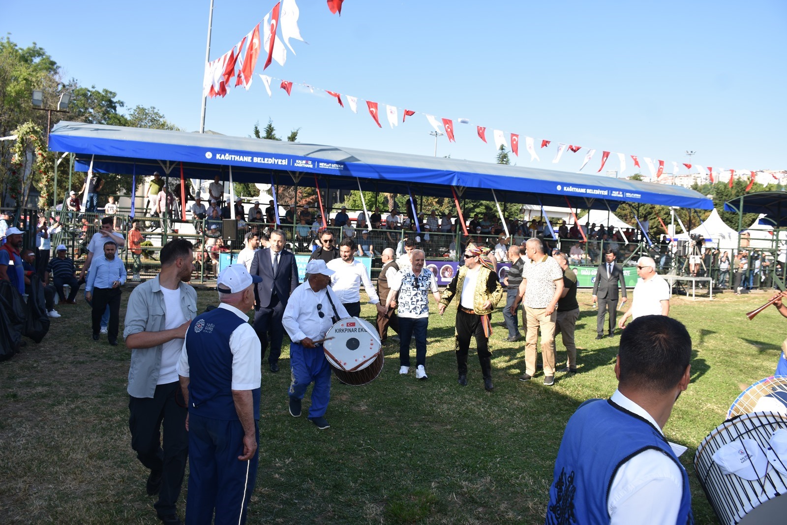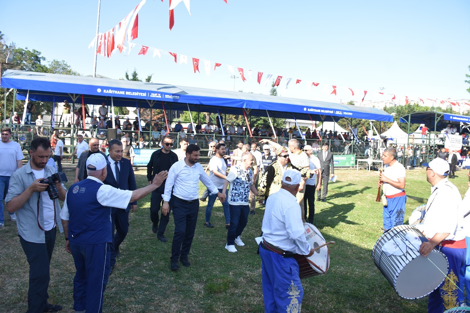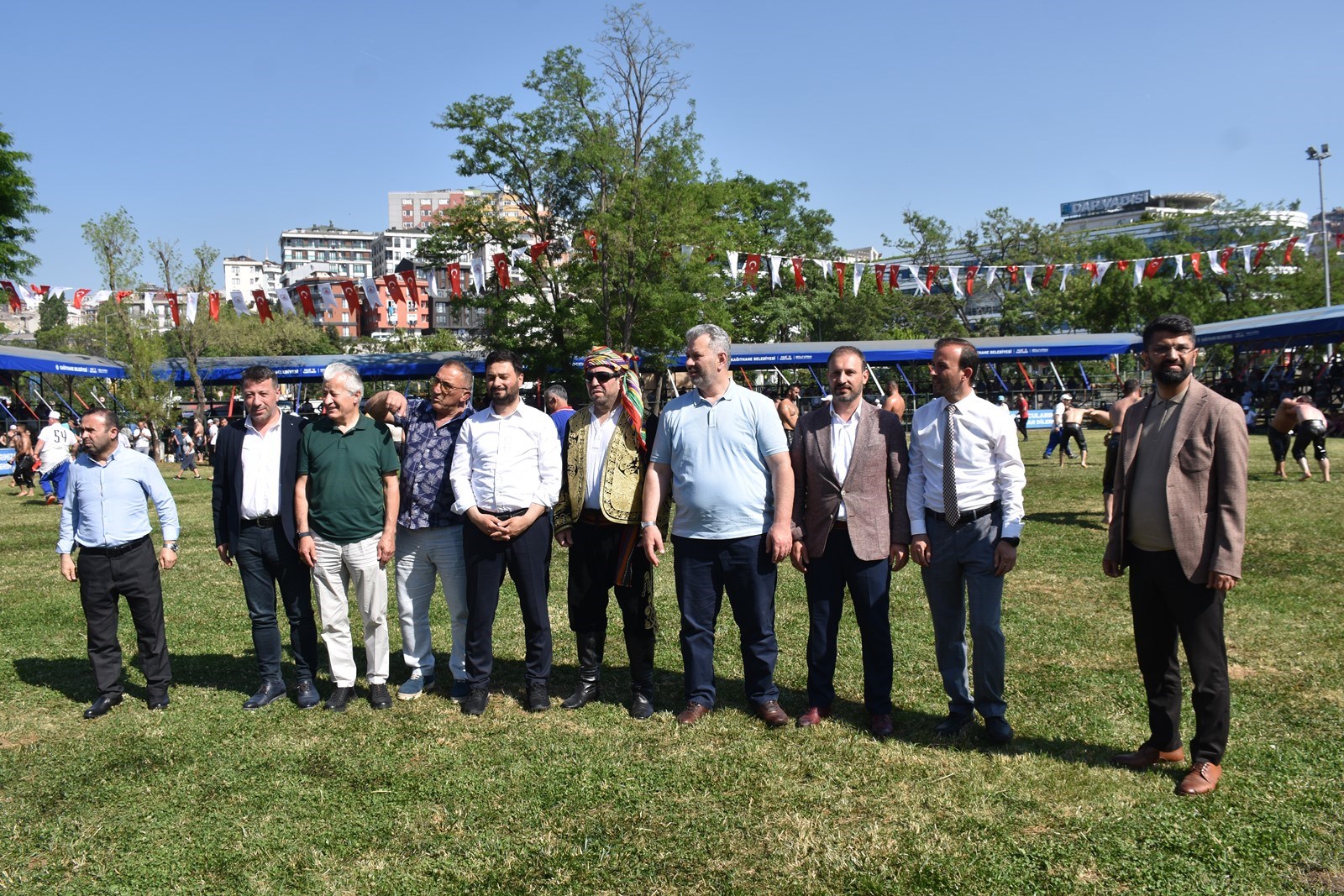 Kağıthane Belediye Başkanı Mevlüt Öztekin’in ev sahipliğinde düzenlenen yağlı güreş festivaline AK Parti İstanbul Milletvekili Hasan Turan, Kağıthane Kaymakamı Tahir Şahin, İstanbul Gençlik ve Spor İl Müdürü Prof. Dr. Burhanettin Hacıcaferoğlu, yurdun dört bir yanından önceki dönem şampiyonları, Ağaları, pehlivanlar ve Kağıthaneliler katıldı.