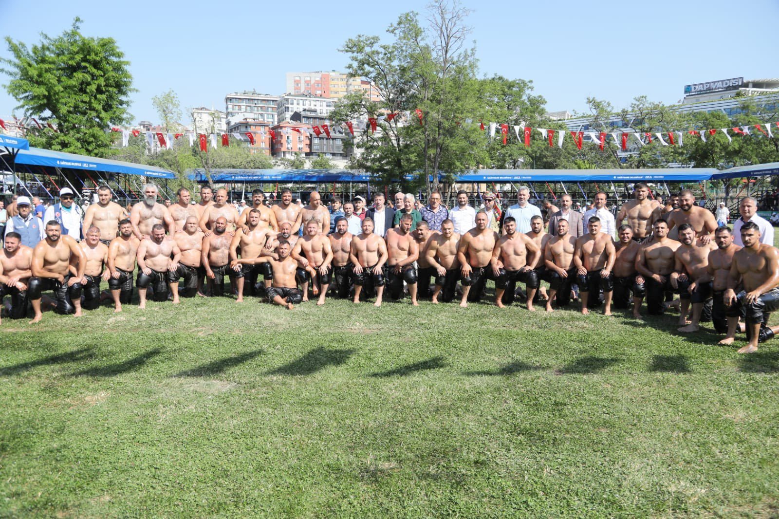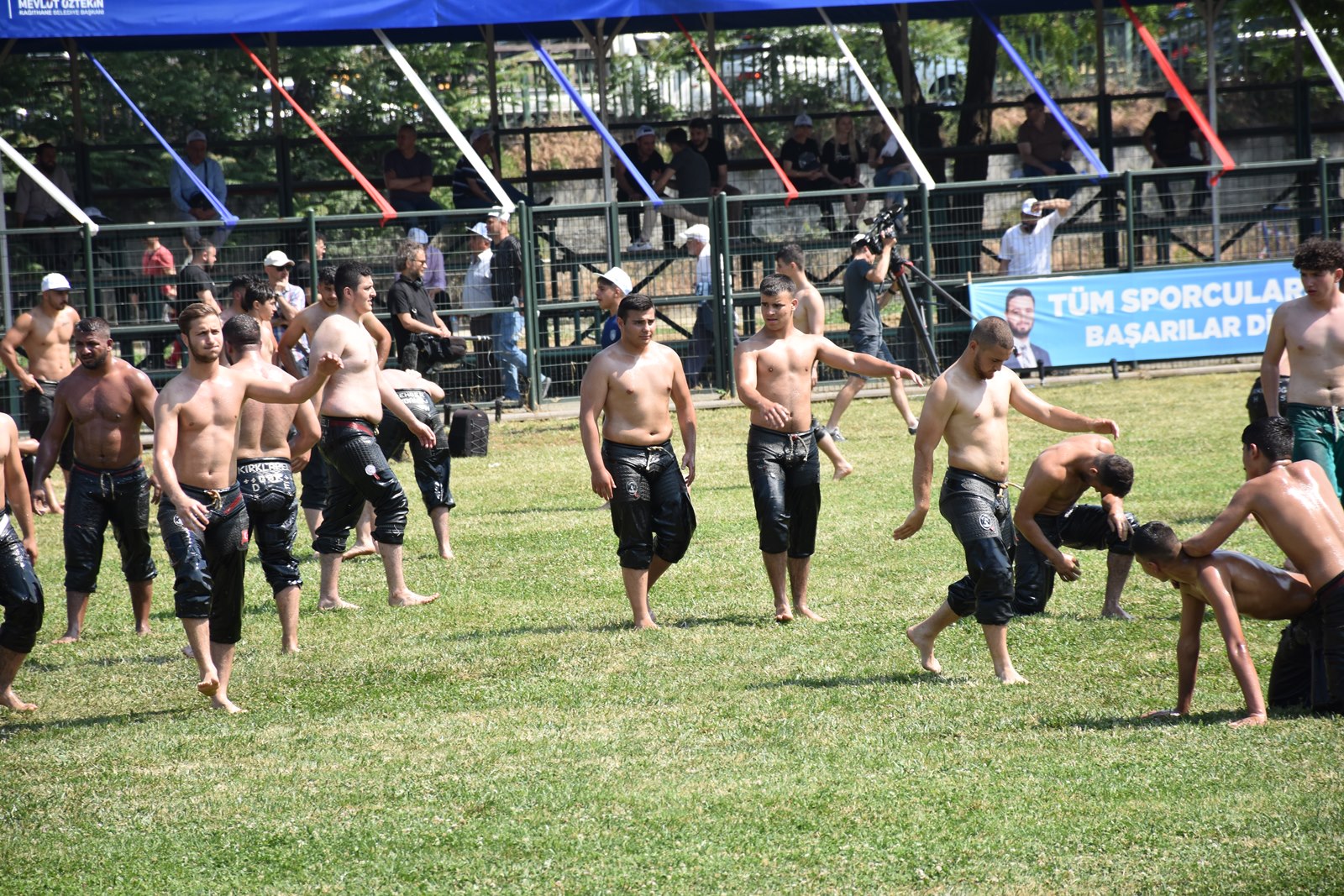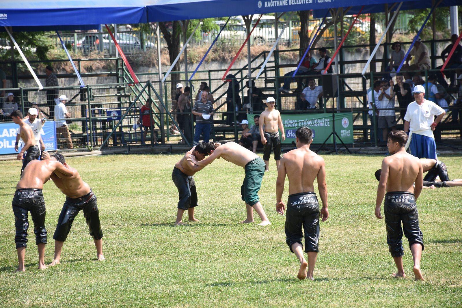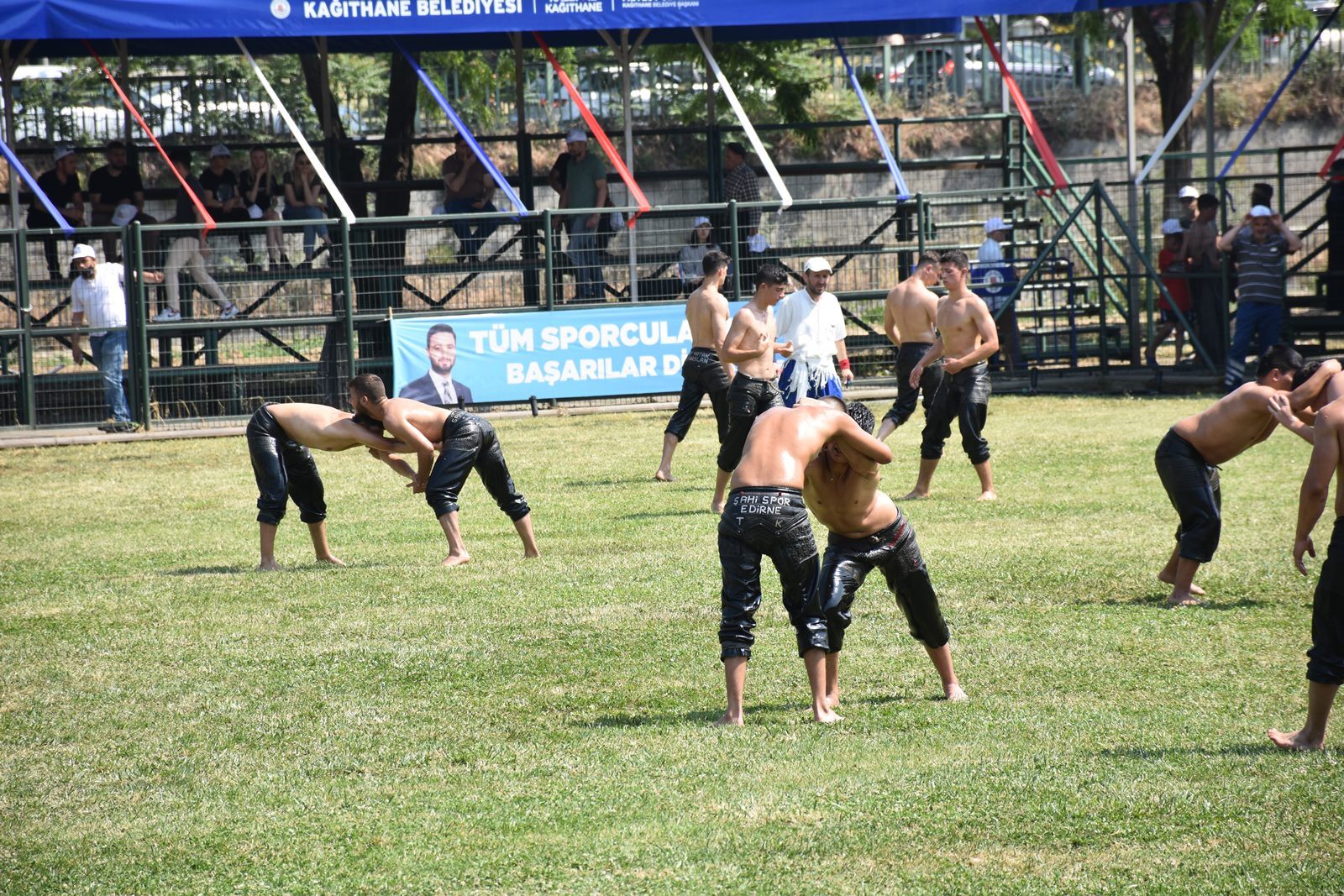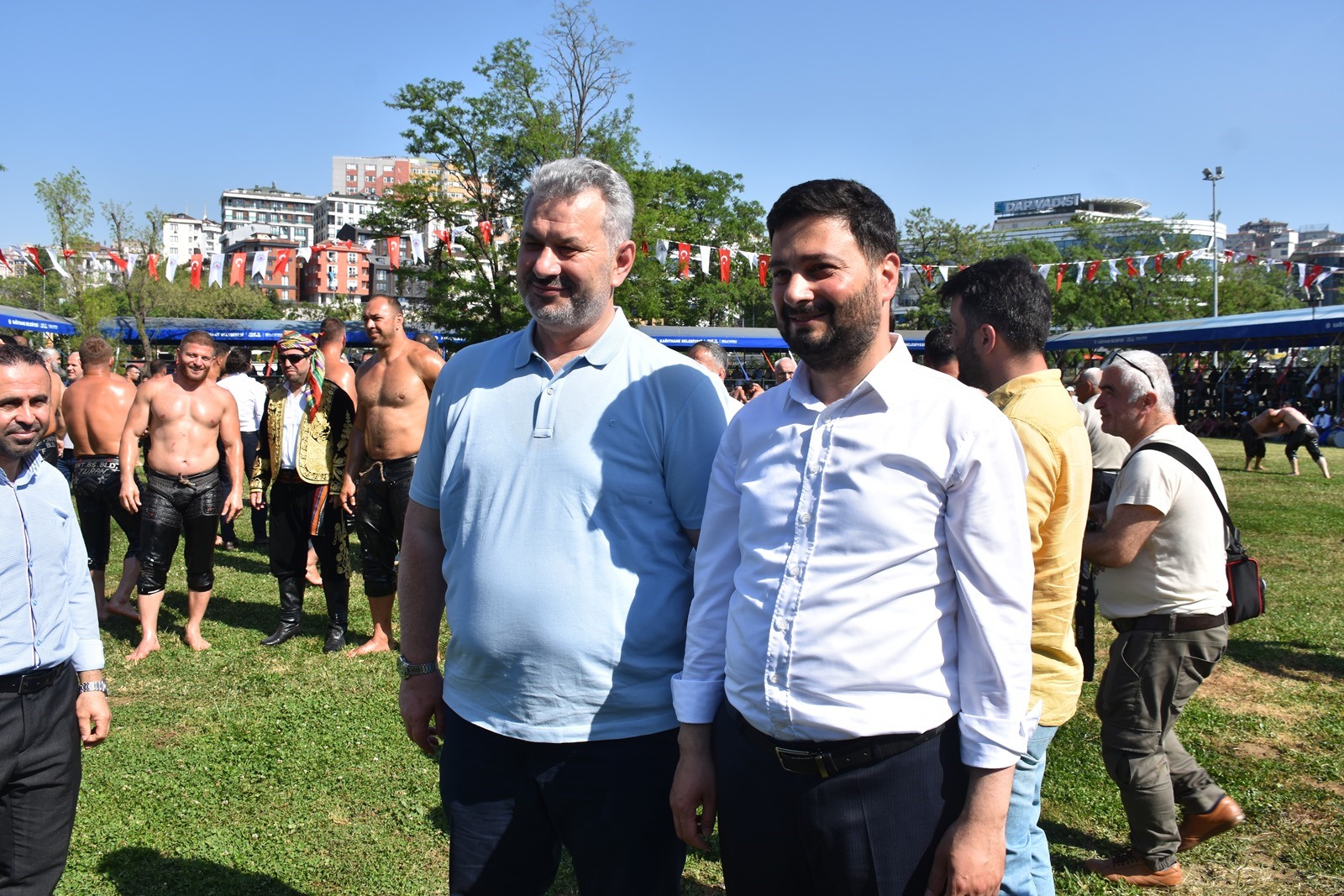 Kağıthane Belediye Başkanı Mevlüt Öztekin’in ev sahipliğinde düzenlenen yağlı güreş festivaline AK Parti İstanbul Milletvekili Hasan Turan, Kağıthane Kaymakamı Tahir Şahin, İstanbul Gençlik ve Spor İl Müdürü Prof. Dr. Burhanettin Hacıcaferoğlu, yurdun dört bir yanından önceki dönem şampiyonları, Ağaları, pehlivanlar ve Kağıthaneliler katıldı.