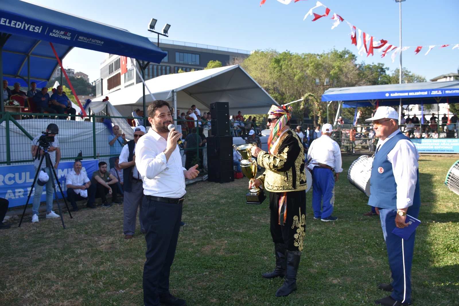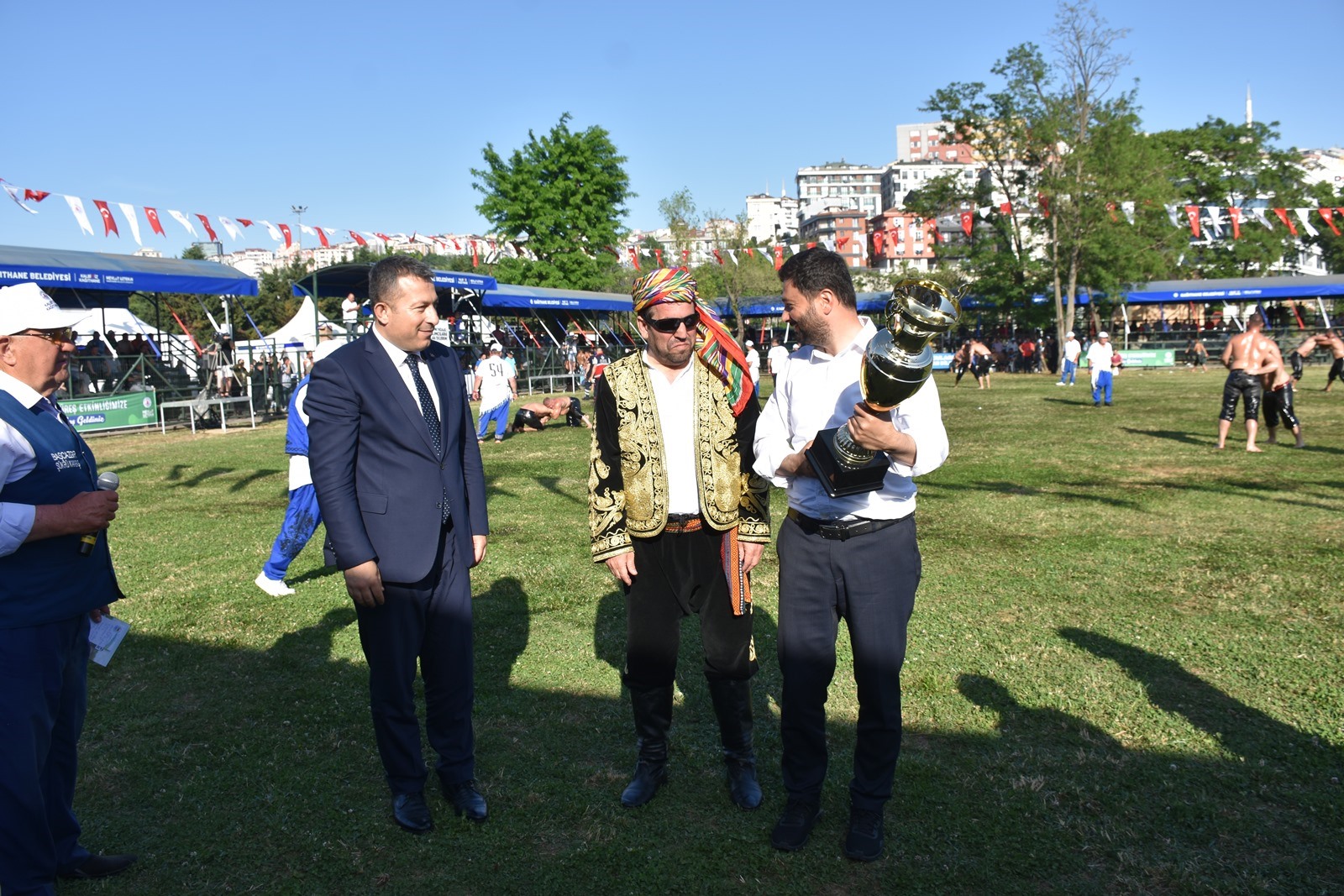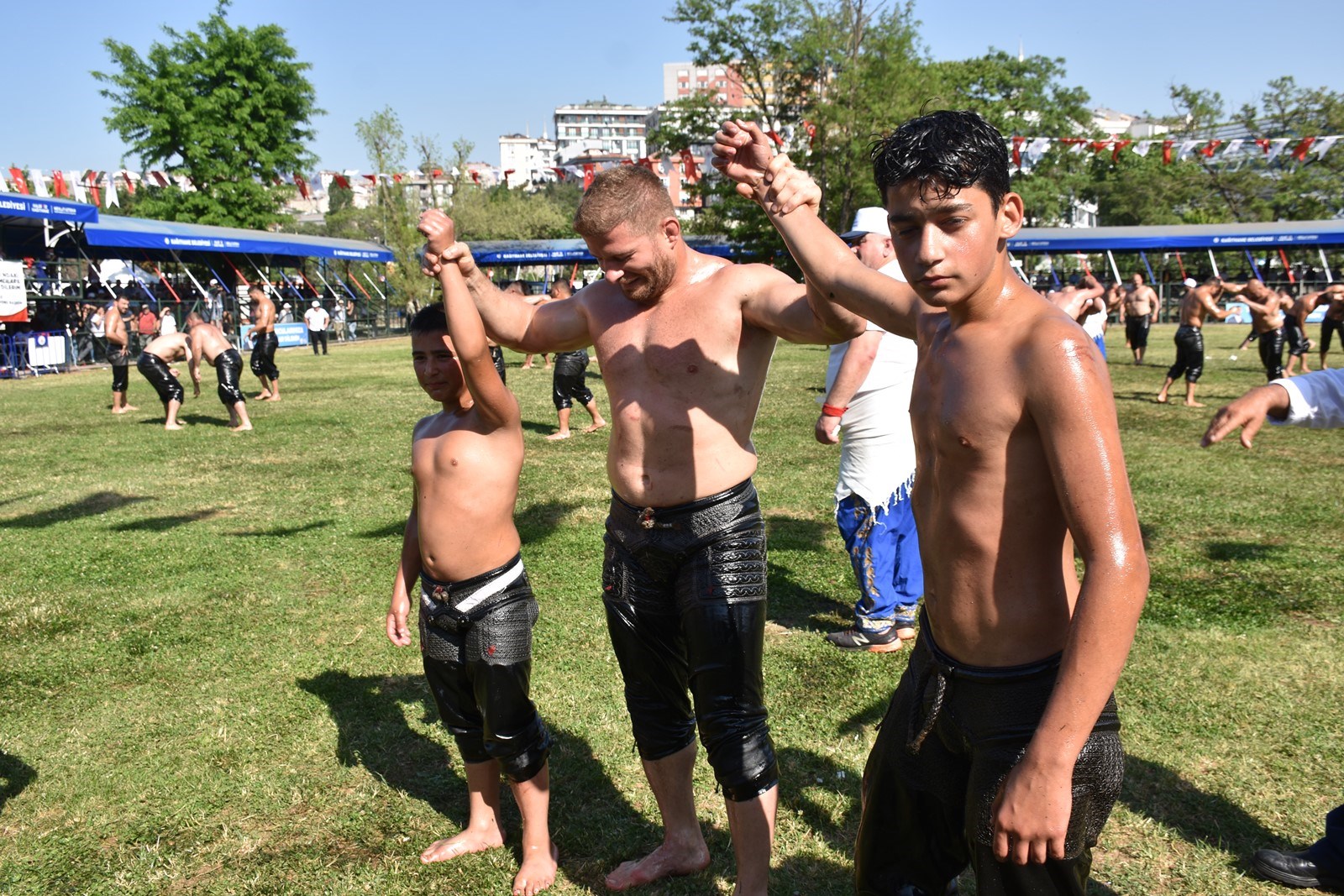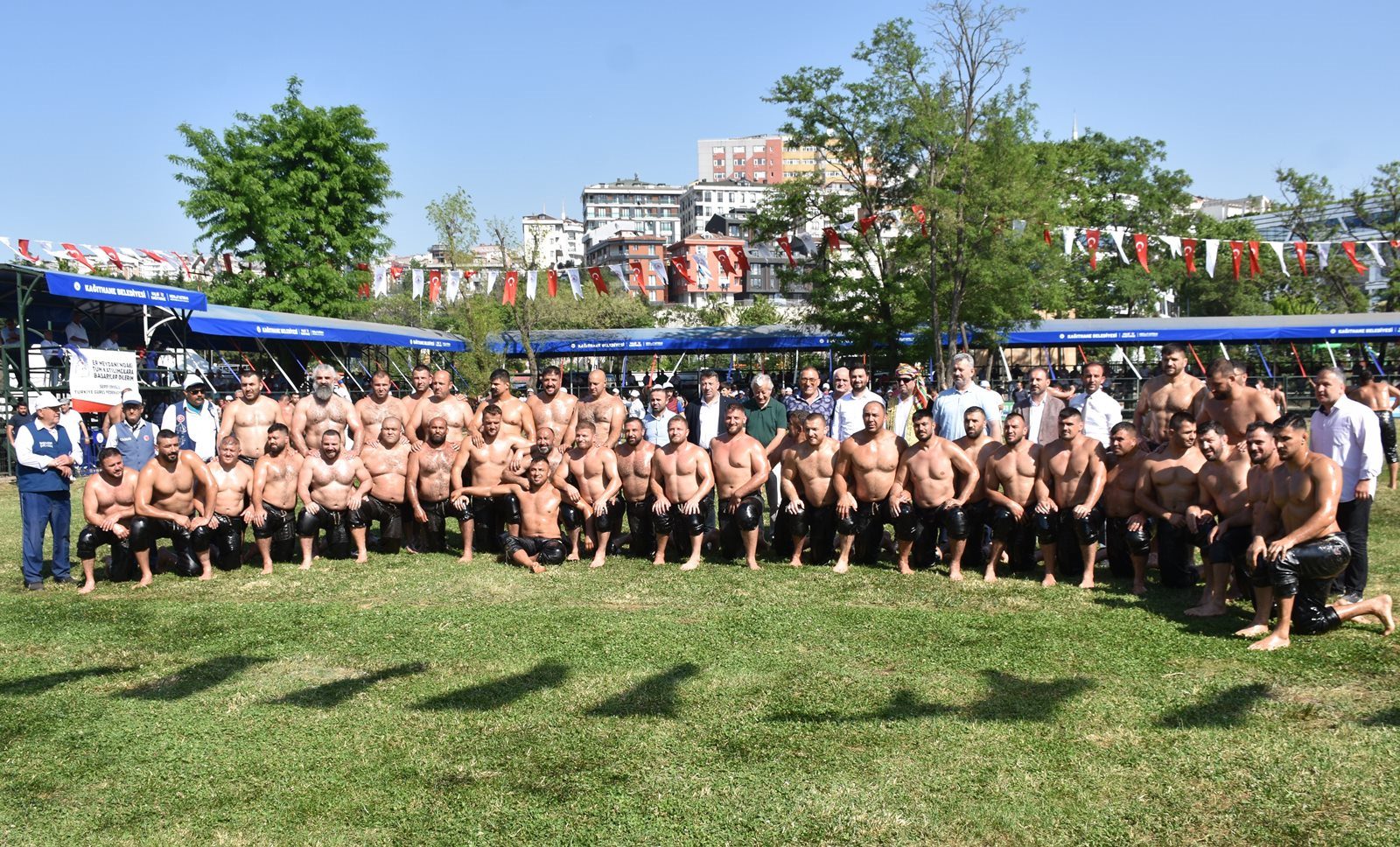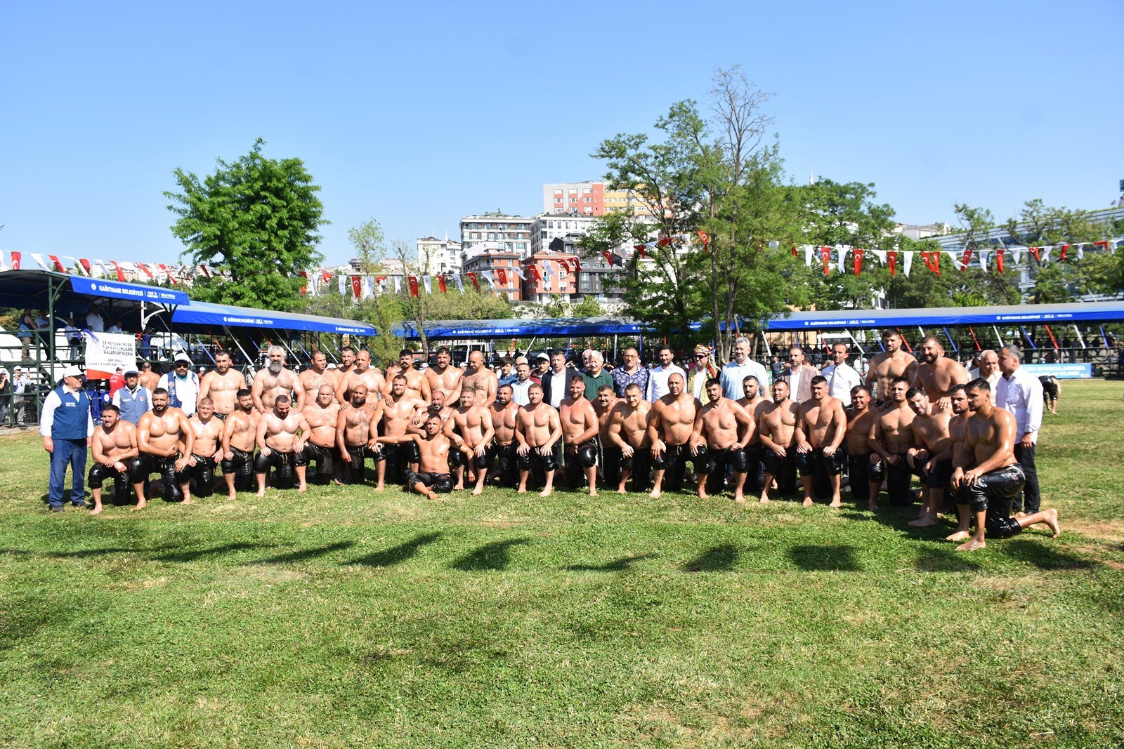 Kağıthane Belediye Başkanı Mevlüt Öztekin’in ev sahipliğinde düzenlenen yağlı güreş festivaline AK Parti İstanbul Milletvekili Hasan Turan, Kağıthane Kaymakamı Tahir Şahin, İstanbul Gençlik ve Spor İl Müdürü Prof. Dr. Burhanettin Hacıcaferoğlu, yurdun dört bir yanından önceki dönem şampiyonları, Ağaları, pehlivanlar ve Kağıthaneliler katıldı.