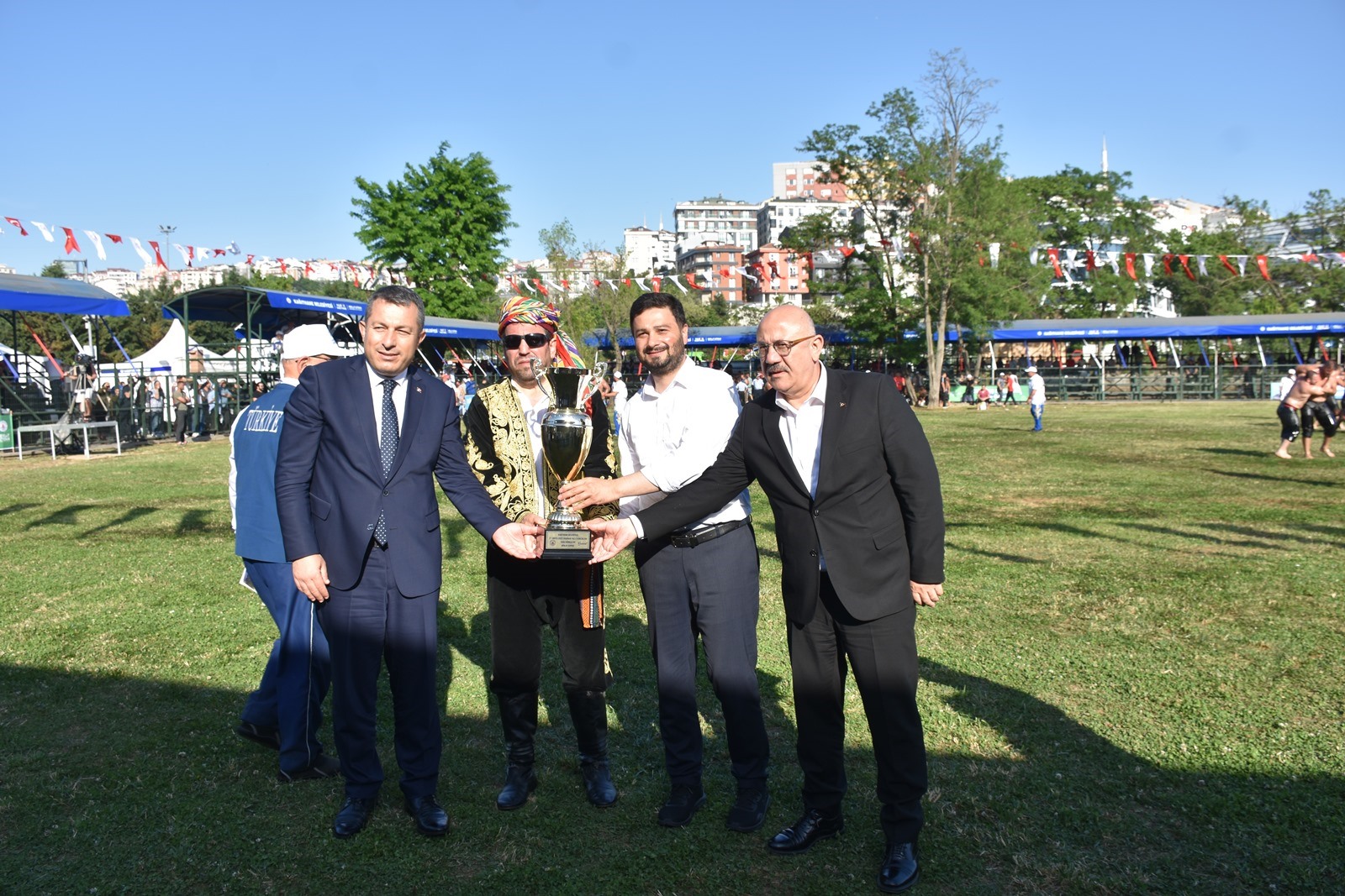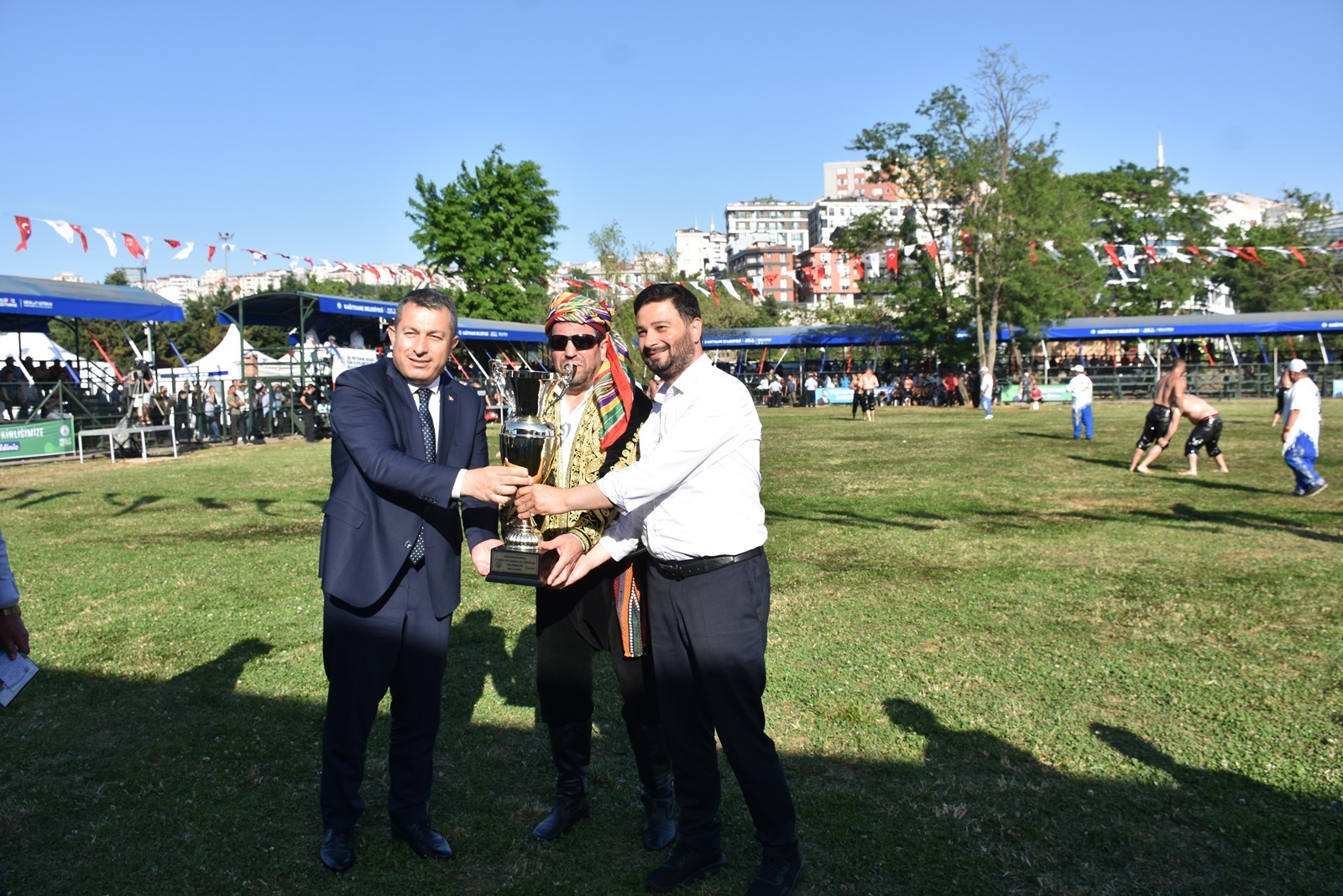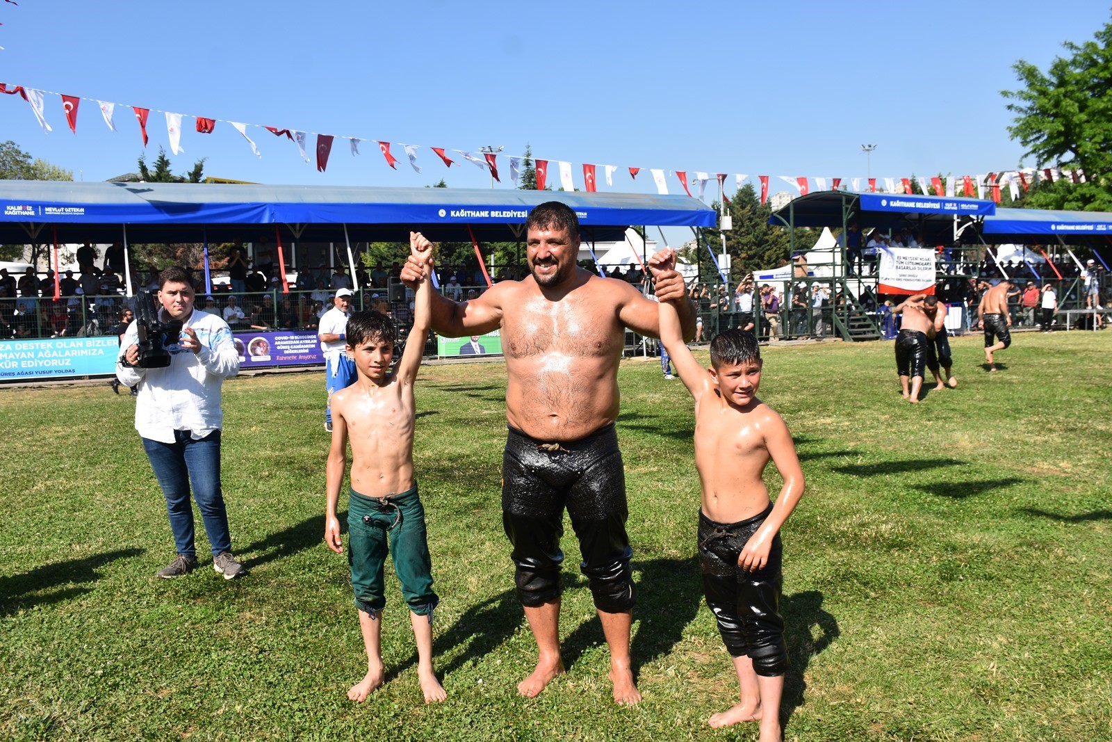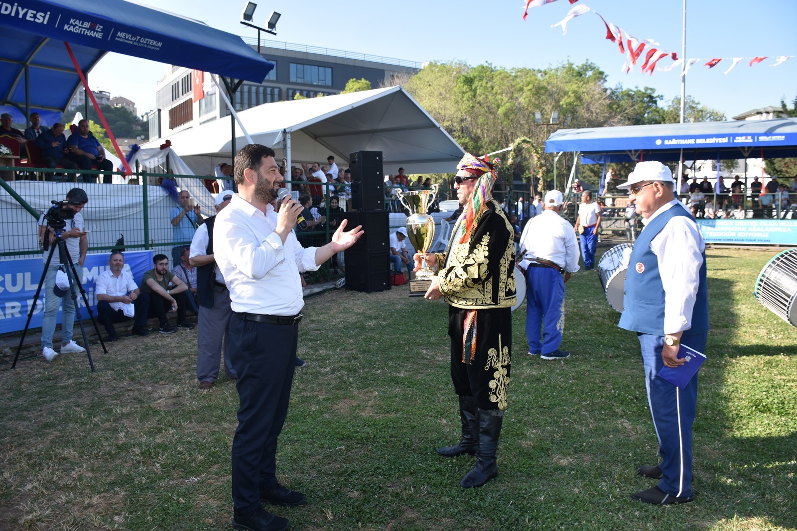 Kağıthane Belediye Başkanı Mevlüt Öztekin’in ev sahipliğinde düzenlenen yağlı güreş festivaline AK Parti İstanbul Milletvekili Hasan Turan, Kağıthane Kaymakamı Tahir Şahin, İstanbul Gençlik ve Spor İl Müdürü Prof. Dr. Burhanettin Hacıcaferoğlu, yurdun dört bir yanından önceki dönem şampiyonları, Ağaları, pehlivanlar ve Kağıthaneliler katıldı.