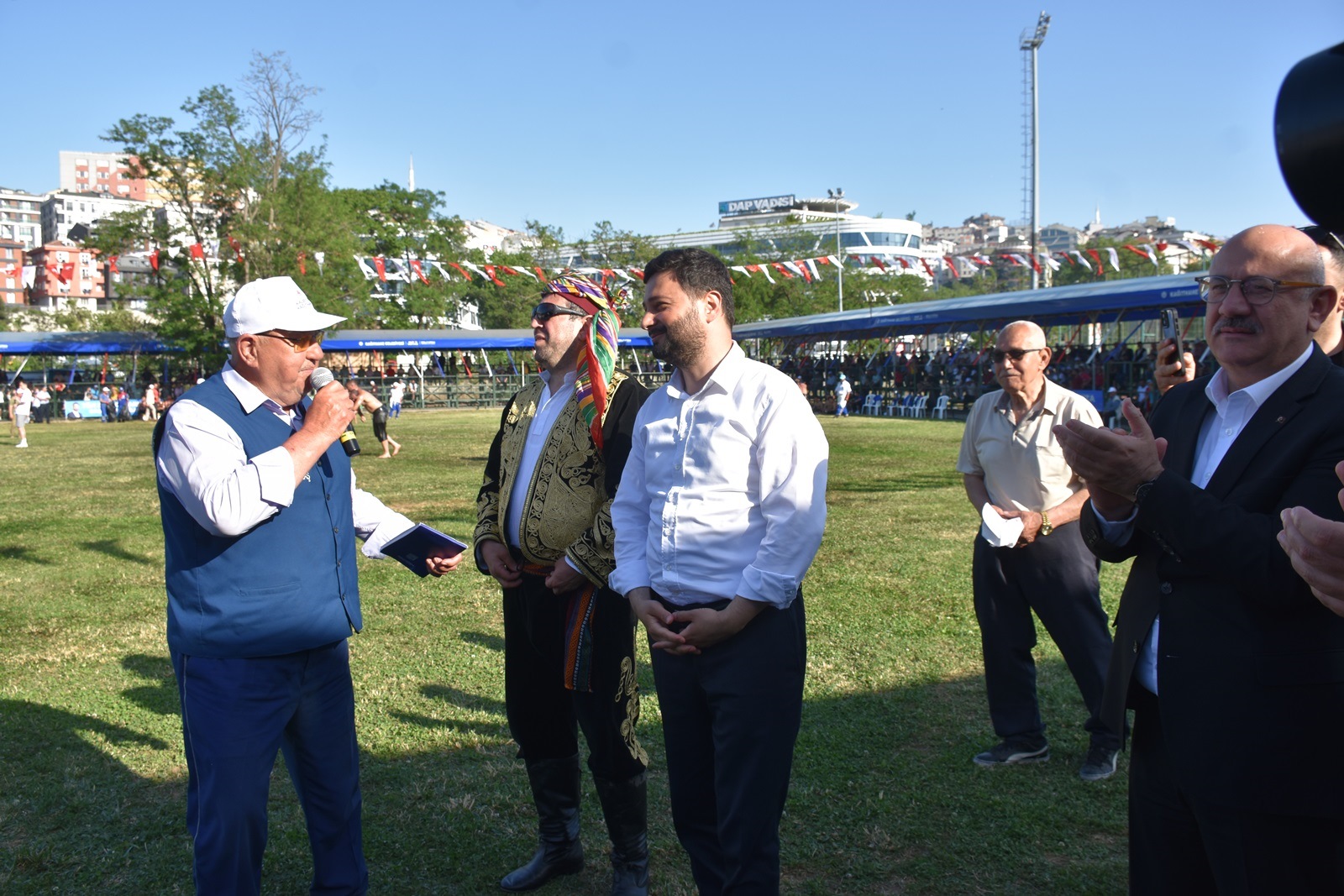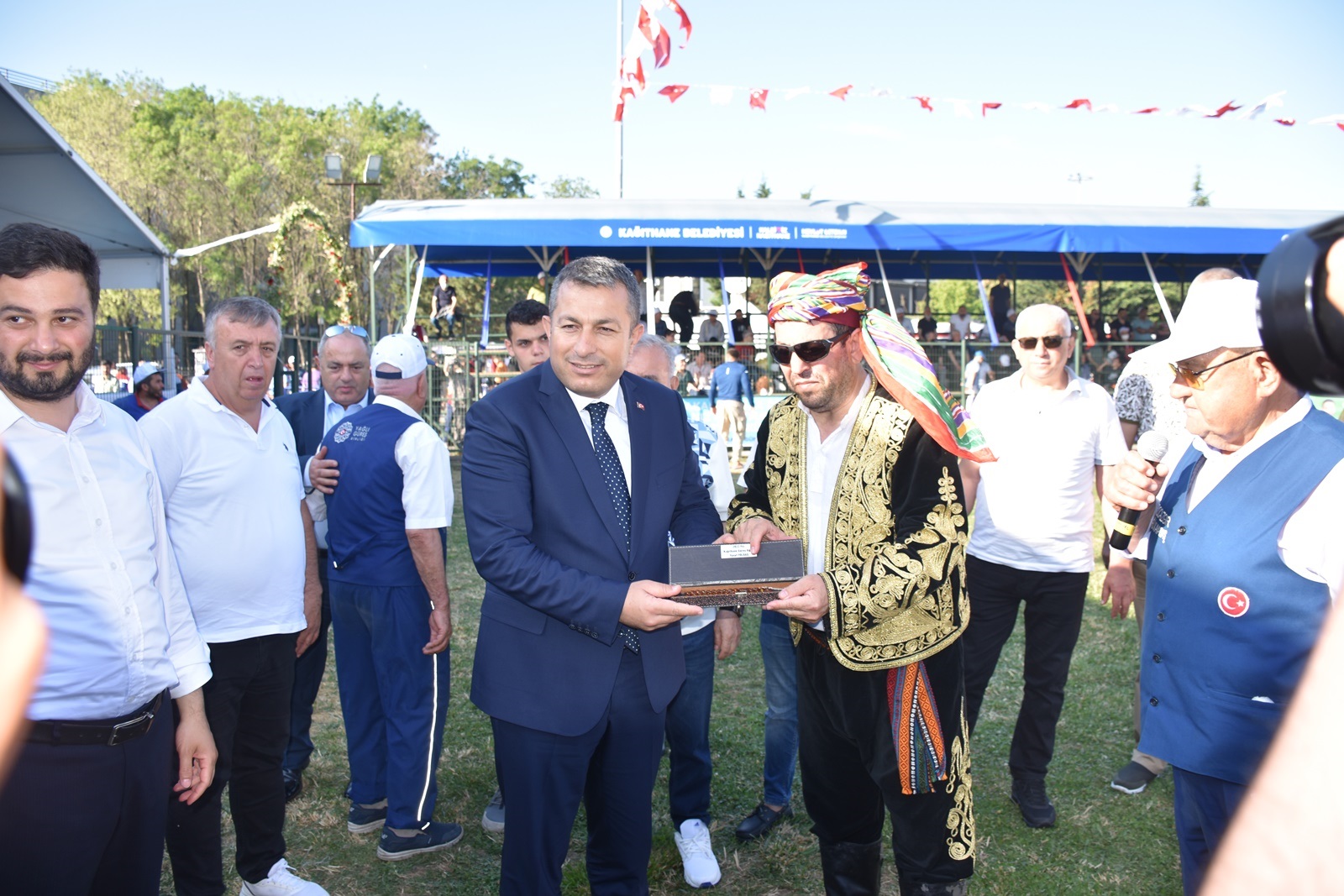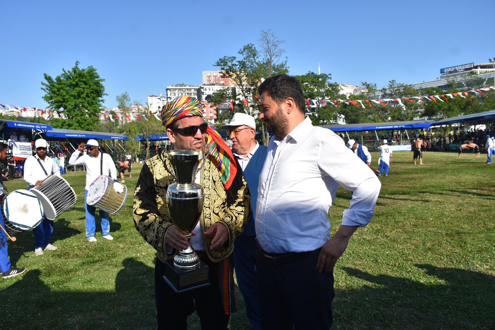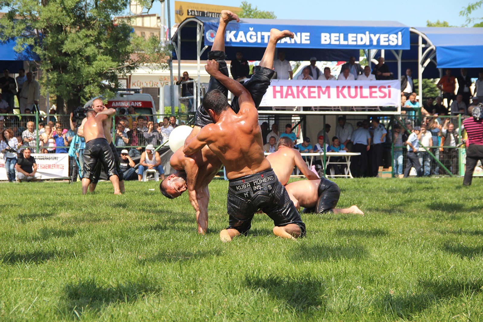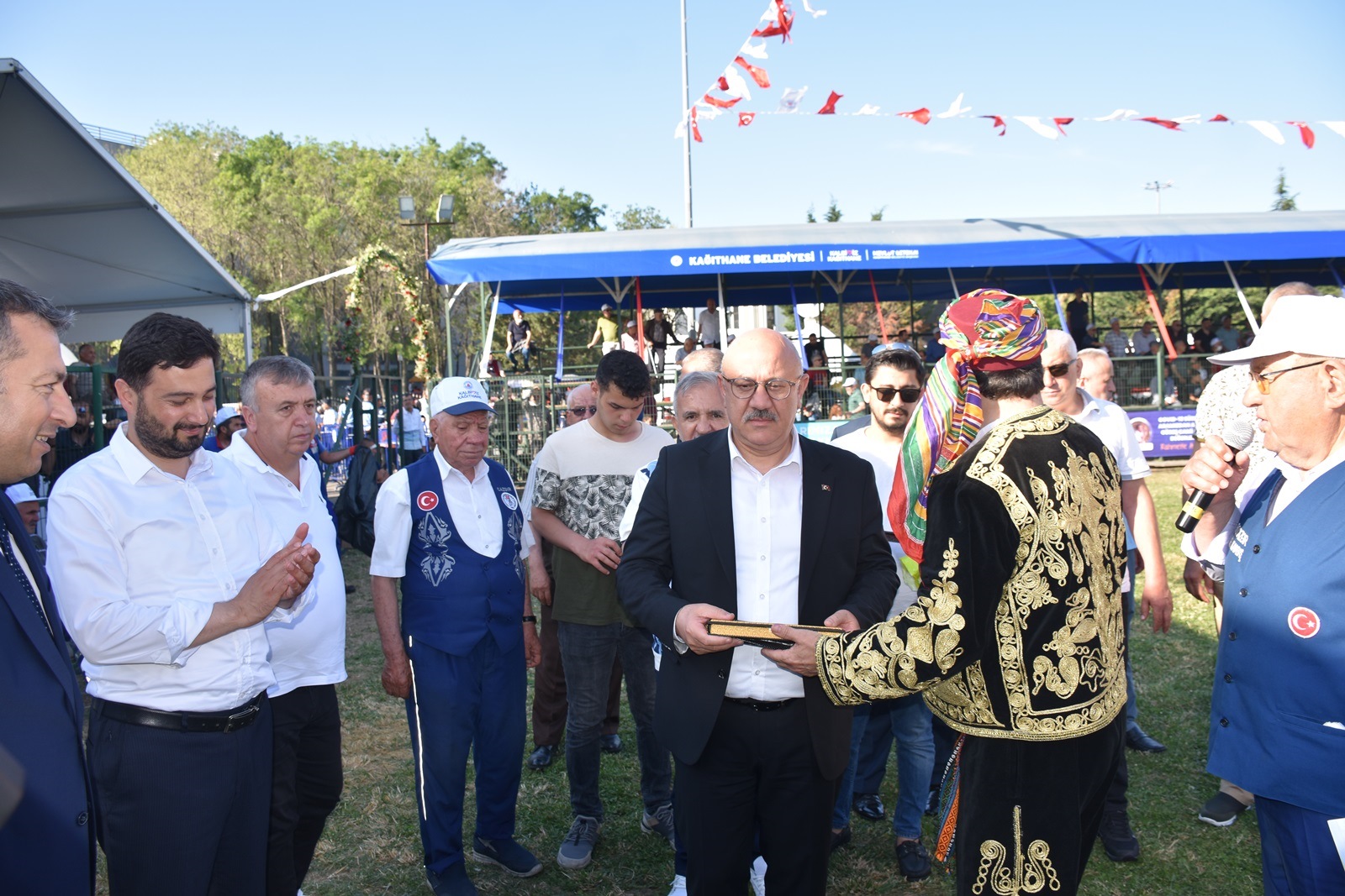 Kağıthane Belediye Başkanı Mevlüt Öztekin’in ev sahipliğinde düzenlenen yağlı güreş festivaline AK Parti İstanbul Milletvekili Hasan Turan, Kağıthane Kaymakamı Tahir Şahin, İstanbul Gençlik ve Spor İl Müdürü Prof. Dr. Burhanettin Hacıcaferoğlu, yurdun dört bir yanından önceki dönem şampiyonları, Ağaları, pehlivanlar ve Kağıthaneliler katıldı.