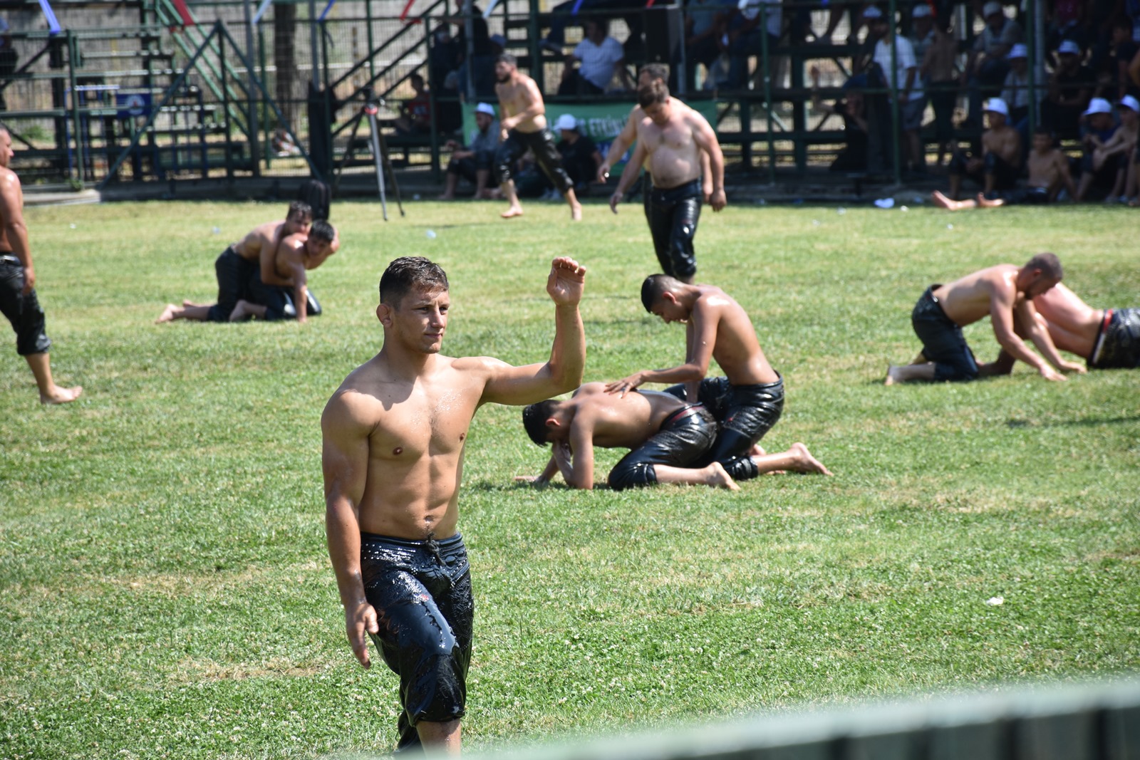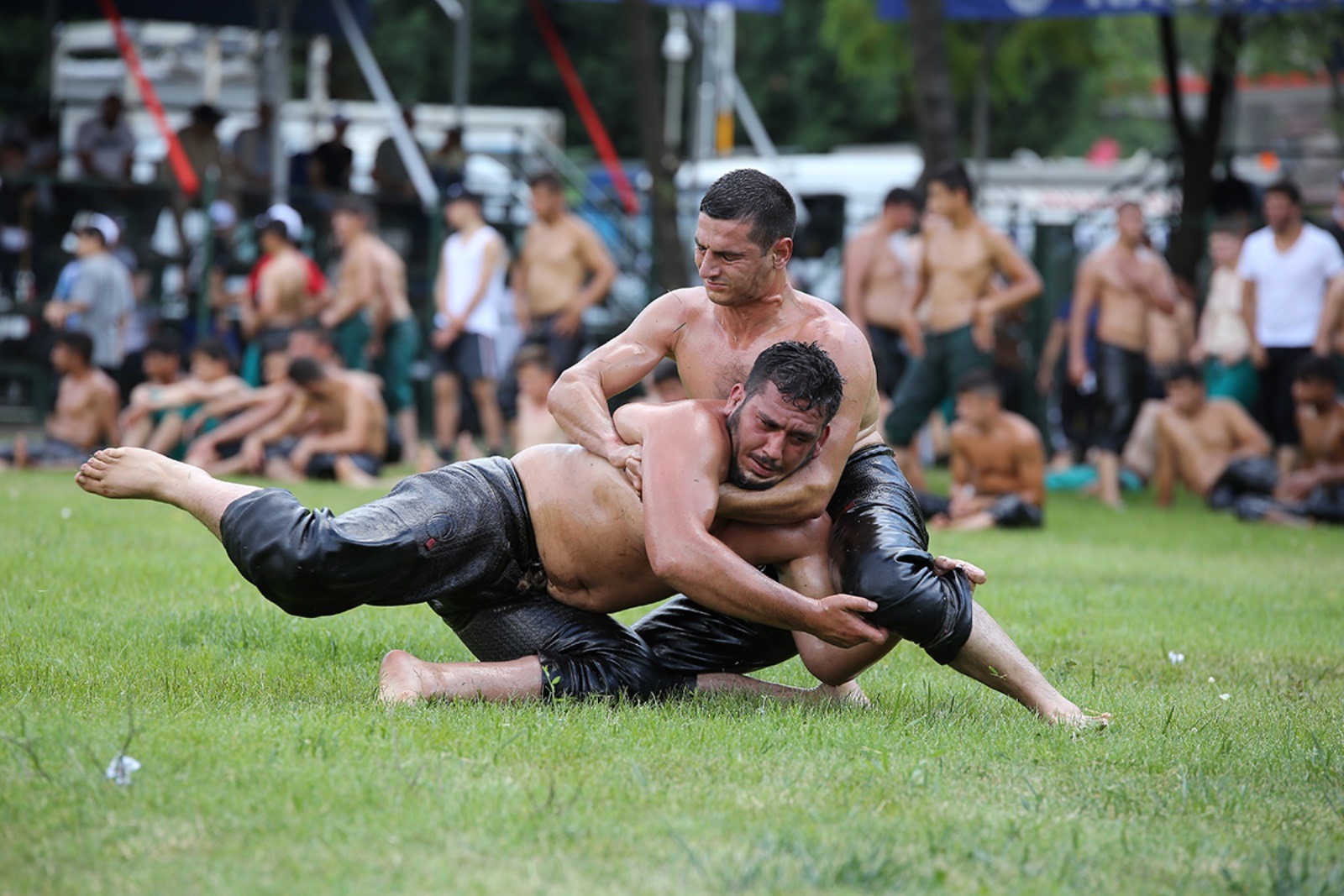 Kağıthane Belediyesi tarafından düzenlenen yağlı güreş festivalinde, yurdun dört bir yanından gelen pehlivanlar güreşirken; festivalin başpehlivanı Faruk Akkoyun oldu.