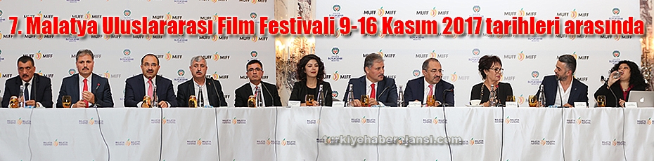 Malatya Büyükşehir Belediyesi tarafından, Malatya Valiliği’nin katkılarıyla, 9-16 Kasım 2017tarihleri arasında gerçekleştirilecek 7. Malatya Uluslararası Film Festivali’nin programı açıklandı... Toplantıya; Malatya Valisi ve Festival Onursal Başkanı Ali Kaban, Malatya Büyükşehir Belediye Başkanı ve Festival Başkanı Ahmet Çakır, Festival Direktörü Suat Köçer, Yeşilyurt Bld. Bşk. ve Festival Yürütme Kurulu Üyesi Hacı Uğur Polat, Battalgazi Bld. Bşk. ve Festival Yürütme Kurulu Üyesi Selahattin Gürkan, Festival İcra Kurulu Başkanı Ertan Mumcu, Ulusal Jüri Başkanı Hülya Koçyiğit, Program Direktörü / Uluslararası Program Koordinatörü Alin Taşçıyan ve Malatya Film Platformu Direktörü Sermin Çakmak Afşin ve basın mensupları katıldı... Ulusal Uzun Metraj Yarışma:BUĞDAY / Semih KaplanoğluDAHA / Onur SaylakEKSİ BİR / Orhan OğuzİŞE YARAR BİR ŞEY / Pelin EsmerKIRIK KALPLER BANKASI / Onur ÜnlüMURTAZA / Özgür SevimliSARI SICAK / Fikret ReyhanSESSİZLİĞİN KARDEŞLERİ / Taylan MintaşSOFRA SIRLARI / Ümit ÜnalTAŞ / Orhan EskiköyYÜZLEŞME / Nejla DemirciZER / Kazım ÖzUlusal Kısa Metraj Yarışma:Almadovar Teorisi / Halit EkeAv Dönüşü / Recep ÇavdarBir İş Görüşmesi Hikayesi / Alkım ÖzmenKot Farkı / Ayris AlptekinKötü Kız / Ayçe KartalKurban / Muzaffer Mehmet ÇağlarKuyu / Rıdvan YavuzPenaber /Ramazan KılıçSirayet / Nuri Cihan ÖzdoğanToprak / Onur YağızUzaktaki Yakınlar / Durmuş SoykutVadi / Can ErkanUluslararası Uzun Metraj Yarışma:Buğday / Semih KaplanoğluCentaur / Aktan AbdykalykovCargo / Gilles CoulierDaha / Onur SaylakDede / Mariam KhatchvaniLife and Nothing More / Antonio Méndez EsparzaPomegranate Orchard / Ilgar NajafPela Janela / Caroline LeoneSon Of Sofia / Elina PsikouMavi Sessizlik / Bülent ÖztürkMadari / Roqiye TavakoliThe Blockage / Mohsen GHARAEIUluslararası Kısa Metraj Yarışma:Arin / Mizgin Müjde ArslanHofre Moshtarak / Asma EbrahimzadeganSes / Darioush Najafi Gol (Arturan)Sirayet / Nuri Cihan ÖzdoğanSummer time with my mother / Diana LuMisappropriation / Ana Maria FerriNest / Ünal AltunyaymakNight guest / Ziregul KubandıkkızıOdnogo razu v Odesi / Vladek ZankovskyVerge / Selman NacarMALATYA FİLM PLATFORMU FİNALİSTLERİ:Ertem Eğilmez Aile Filmleri Yapım Destek Ödülü Finalistleri:AMERİKA OTOBÜSÜ / DERYA DURMAZALİ'NİN TABİATI / LEVENT ÇETİNCEVİZ AĞACI / FAYSAL SOYSALJULİA'YA AŞIK OLMAK / ALP KAMBERKAPLUMBAĞA TERBİYECİSİ / ORHAN İNCEOKUL TRAŞI / FERİT KARAHANTRT Ön Alım Yapım Destek Ödülü Finalistleri:ANADOLU PARSI / ORÇUN KÖKSALASİ VE MAVİ / RUHİ KARADAĞBİRLİKTE ÖLECEĞİZ / MELİK SARAÇOĞLU, HAKKI KURTULUŞKAPAN / SEYİD ÇOLAKMAVZER / FATİH ÖZCANYURT / NEHİR TUNAULUSAL UZUN METRAJ JÜRİ ÜYELERİ:Hülya Koçyiğit (Jüri Başkanı)Ebru CeylanTaner BirselHayk KirakosyanSelim EvciULUSAL KISA METRAJ JÜRİ ÜYELERİ:Serdar Sidar KarakaşFırat SayıcıSinan SertelYonca ErtürkZeynep Gülru KeçecilerULUSALARARASI UZUN METRAJ JÜRİ ÜYELERİ:Nacer Khemir (Jüri Başkanı)Seçil BükerFatemah Motamed-AriaIntishal Al TimimiEdvinas PukštaULUSLARARASI KISA METRAJ JÜRİ ÜYELERİ:Nefise Özkal LorentzelReshad StrikGulbara TolomushovaDeniz Eyüboğlu AydınEttienne De RicaudMALATYA FİLM PLATFORMU JÜRİ ÜYELERİ:Elif DagdevirenSerkan YildirimCemil YavuzNazif TuncAtalay TasdikenNETPAC JÜRİSİ:Jeffrey jeturianMaja BogojevicSabire SoytokKEMAL SUNAL HALK ÖDÜLÜ DEĞERLENDİRME KOMİTESİ:Asım Demirkök GazeteciDilaver GürAbdullah ErgünSİYAD JÜRİSİ:Coşkun ÇokyiğitMünir Emre GökerRıza Oylum‘http://www.malatyafilmfest.org.tr’