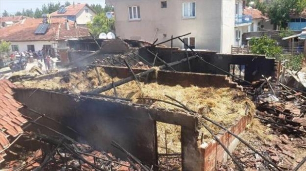 Uşak'ın Ulubey İlçesi'ndeki bir besihanenin çatısına düşen yıldırımın neden olduğu yangında, 9 inek telef oldu.