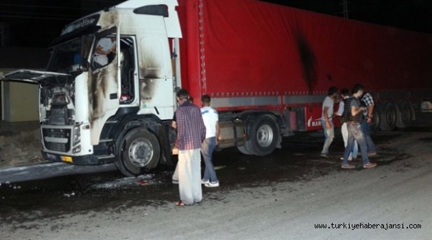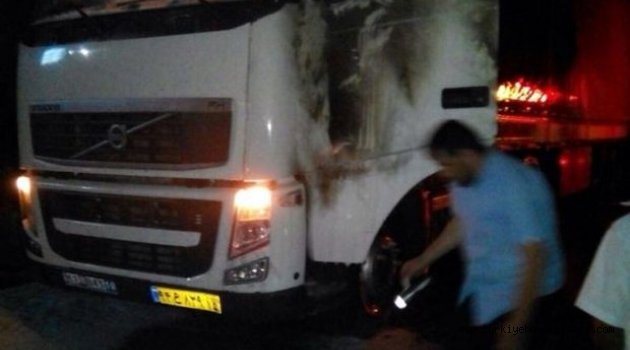 Ağrı'nın Doğubayazıt ilçesinde bir grup PKK'lı, park halindeki İran plakalı TIR'ı yaktı.