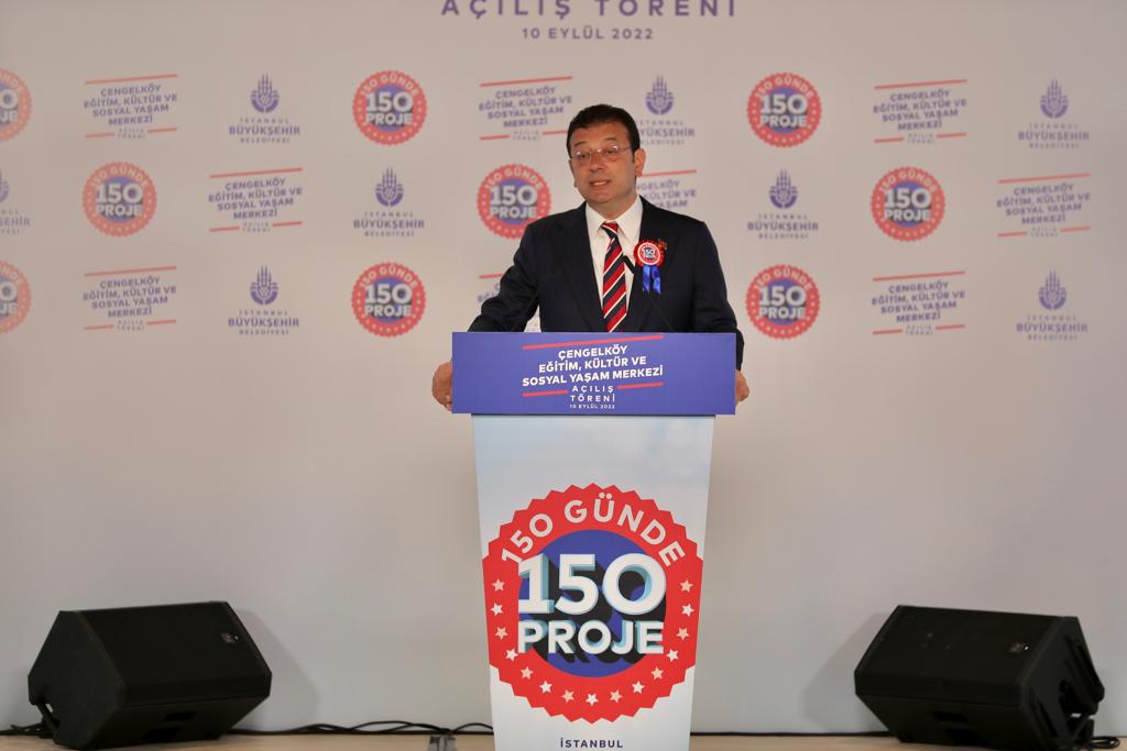 Bu süreçte tempolarını, iş yapma ve çözüm üretme hızlarını artırdıklarını vurgulayan İmamoğlu, “150 Günde 150 Proje, işte bu geldiğimiz noktanın ifadesidir” dedi. ‘Her projemizle İstanbul'da aslında hayatı kolaylaştırıyor ve insanlarımızın ihtiyaçlarını karşılıyor ve hemşehrilerimizi mutlu ediyoruz” diyen İmamoğlu, “Hem halkımızı, milletimizi hem de Millet İttifakı'nın tüm bireylerini mutlu edecek bir süreci İstanbul'da yaşatmayı kesinlikle ve kesinlikle hedefliyoruz. Biz, iki büyük mühendislik projesi yapalım, ardından da süreci idare edelim anlayışında bir yönetim olmadık, olmayacağız. 150 projemize bakarsanız, içinde sadece büyük mühendislik projeleri değil, yanı sıra hayatın her alanında insanına dokunan, toplumsal kalkınma ve adalet adına çok önemli işleri görürsünüz” ifadelerini kullandı.