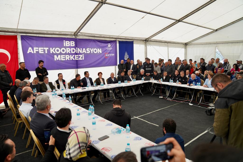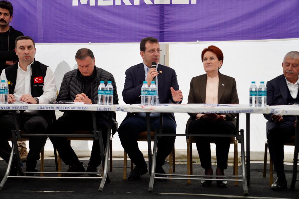 “AMACIMIZ GEÇİCİ BARINMAYI DAHA GÜÇLÜ HALE GETİRMEK”“Bundan sonraki en önemli hususlardan birisi, geçici barınmayı daha güçlü hale getirmek” diyen İmamoğlu, şunları söyledi: “Çadırın, konteynerin hizmet edemeyeceğini düşünüyoruz. Aynı zamanda biz, yine Hatay Büyükşehir Belediyemizle, Hatay'ın yeni kentleşme sürecine dönük koordinasyonunda hizmet sunmayı planladık. Bu süreci yakalayana kadar, geçici barınmayla ilgili de güçlü konaklama alanlarını üretmek istiyoruz, mahalle kimliği biçiminde. Hatta bunları bir miktarda ticari alanlarla destekleyici. Yine tabii ki AFAD'ın koordinasyonunda, Hatay Büyükşehir Belediyemizin öncülüğünde bu tür alanları bölgeye hediye etme sürecine büyük bir çaba gösteriyoruz. Bunun yine imalat sürecini hem bizim Fen İşleri birimimiz olsun hem KİPTAŞ Genel Müdürlüğümüz olsun -ki arkadaşlarım çalışmalarını burada yürütüyorlar- muhtemeldir ki önümüzdeki salı, sahada başlangıcını yapacağız. İlk etapta, yaklaşık 2000 kişinin konaklayacağı mahalleleri kuracağız. Bunun örnek olmasını istiyoruz. Deprem bölgesinde, imar sürecini iyi planlamaz isek, şehirlerin ruhunu, şehirlerin, insanlarımızın sosyolojik yapısını, beklentilerini… Sadece işi, bir blok ya da bir demir, beton üzerinden yorumlar isek, gerçekten yıkılan bu kentlerimizin yerine ne Hataylıyı mutlu edecek ne de Maraşlıyı ne de Adıyamanlıyı mutlu edecek kentler kurabilmemiz mümkün değil. O bakımdan tüm bu duyguları taşıyan, hissettiren, ortak akılla, katılımcılıkla süreci çok telaşa düşmeden yürütmeliyiz.”“ETKİN BİR SÜRECİ, İNŞALLAH 14 MAYIS'TAN SONRA MEMLEKETİMİZE HEDİYE ETMEYİ BİRLİKTE BAŞARACAĞIZ”“Bundan sonraki sürecin tasarlanması, bence en önemli husus olmuştur şu an itibariyle” diyen İmamoğlu, “Bu noktada da geçici konutlarımızı yoğun bir biçimde üretip, kalıcı konutlarımızı ve kalıcı yaşam alanlarımızı gerçekten bu coğrafyanın belki yüzlerce yıl varlığını en güçlü şekilde koruyacak bir mekanizmaya dönüştürmemiz şart. Şu an en yoğunlaştığımız mesele budur. Hepimize başarılar diliyorum. İnşallah hem İstanbul'daki deprem tehdidini bertaraf edecek, katılımcı modellerle devletimizin her kurumunu aynı çatı altında toplayan önerilerimizle, ayrıştıran değil birleştiren bir mantıkla bertaraf edecek bir süreci Türkiye'ye göstereceğiz hem de bu coğrafyada, sadece Hatay Büyükşehirimiz değil, 10 belediye, 10 şehrin yapımı ve imarı noktasında da etkin bir süreci, inşallah 14 Mayıs'tan sonra memleketimize hediye etmeyi, kazandırmayı, bilimle, teknikle, akılla yürütmeyi sizlerle birlikte başaracağız. Bu yönde çalışmalarımız yoğun bir biçimde devam ediyor” ifadelerini kullandı.