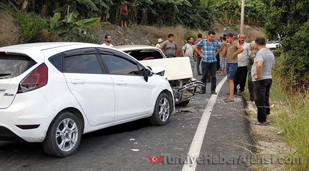 Antalya'nın Alanya ilçesinde iki otomobilin çarpışması sonucu 12 kişi yaralandı.Mehmet S. yönetimindeki 07 LRB 58 plakalı otomobil, Yaylalı Mahallesi'nde karşı yönden gelen Hakan A'nın kullandığı 07 YG 077 plakalı otomobille çarpıştı.Kazada yaralanan sürücüler ile araçlardaki 10 kişi, 112 Acil Servis ekiplerince kentteki hastanelere kaldırıldı.Yaralıların hayati tehlikesinin bulunmadığı öğrenildi.