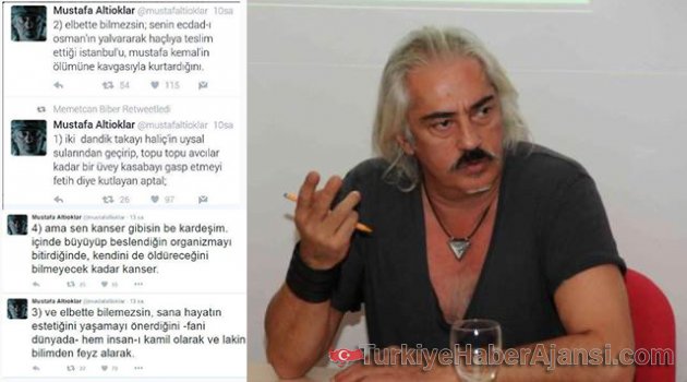 Yönetmen Mustafa Altıoklar, İstanbul'un fethi ve bugün düzenlenen kutlamalar için sosyal medya üzerinden skandal paylaşımlarda bulundu.İSTANBUL'UN FETHİNİ KÜÇÜMSEMEYE KALKTIÇağ açıp kapatan bir zafer olan İstanbul'un fethedilmesini "İki dandik takayı Haliç'in uysal sularından geçirip, topu topu Avcılar kadar bir üvey kasabayı gasp etmek"olarak niteleyen Altıoklar, Osmanlı devletinin yalvararak haçlılara teslim ettiği İstanbul'u Atatürk'ün kurtardığını söyledi.Altıoklar'ın tweetlerinde şu ifadeler yer aldı;"İki dandik takayı Haliç'in uysal sularından geçirip, topu topu Avcılar kadar bir üvey kasabayı gasp etmeyi fetih diye kutlayan aptal; elbette bilmezsin; senin Ecdad-ı Osman'ın yalvararak haçlıya teslim ettiği istanbul'u, Mustafa Kemal'in ölümüne kavgasıyla kurtardığını ve elbette bilemezsin, sana hayatın estetiğini yaşamayı önerdiğini."