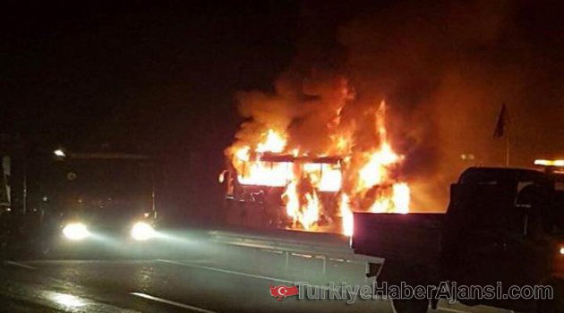 Olay, Polatlı ilçesinde meydana geldi. Ankara-Eskişehir Karayolu üzerinde Balıkesir'den Ankara istikametine doğru seyreden Mustafa Ç. idaresindeki 16 KN 139 plakalı şehirlerarası yolcu otobüsünün motoru, henüz belirlenemeyen bir sebepten dolayı alev aldı. Alevler kısa sürede tüm otobüsü sardı.CAMLARDAN ATLADILAROtobüsün yandığının fark edilmesi üzerine otobüsteki yolcular arasında panik yaşandı. Yolculardan 5'i otobüs camlarını kırarak çıkarken, diğer 33 yolcu ise son anda kurtarıldı. Camdan atlayarak otobüsten çıkan 5 kişinin vücudunun çeşitli yerlerinde cam çizikleri oluştu.YANGIN GÜÇLÜKLE KONTROL ALTINA ALINDIVatandaşların ihbarı üzerine olay yerine çok sayıda itfaiye, jandarma ve sağlık ekibi intikal etti. Alevler içinde kalan otobüse müdahalede bulunan itfaiye erleri, yangını güçlükle kontrol altına aldı.ANKARA-ESKİŞEHİR YOLU TRAFİĞE KAPATILDIUzun uğraşlar sonucunda söndürülen yangının ardından otobüs kullanılamaz hale geldi. Sağlık ekipleri otobüsten atlayarak yaralanan ve dumandan etkilenen yolculara müdahalede bulundu. Jandarma ekipleri, Ankara-Eskişehir Karayolu'nu trafiğe kapattı. Olayla ilgili inceleme başlatıldı.