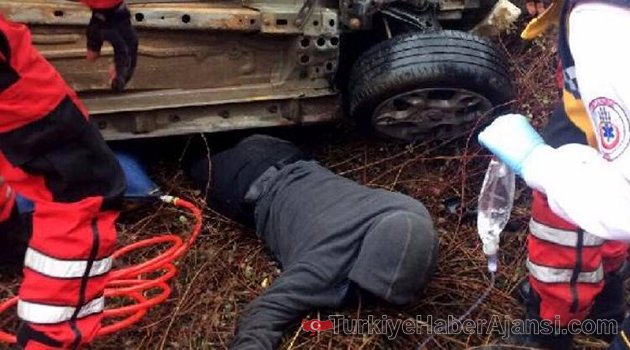 Bartın'da, dün akşam kontrolden çıkarak şarampole yuvarlanan otomobilin altında sıkışan sürücü Mustafa Çelik, 9 saat sonra gün aydınlanınca fark edilerek kurtarıldı.