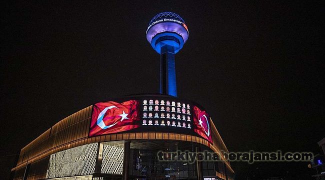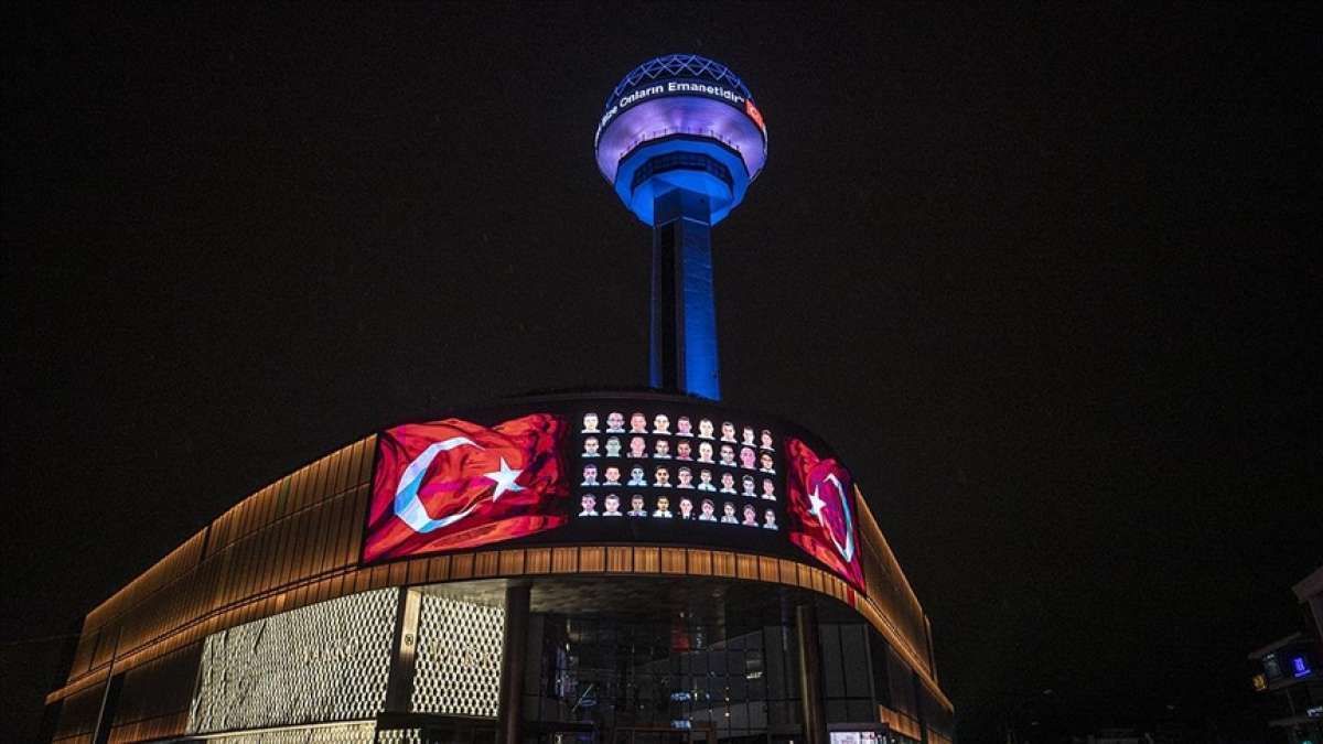 Kulenin tepe kısmındaki ekranda "Şehitlerimizin aileleri bizlere onların emanetidir" mesajı yer alırken, AVM kısmında bulunan dev led ekranlardan ise bir şehit polisin cenaze töreninden kesitler, şehit polislerin fotoğrafları, Türk bayrağı görüntüsü ve "Şehidim, Ruhun şad olsun aileleriniz bize emanet.." ifadesiyle yansıtıldı.
