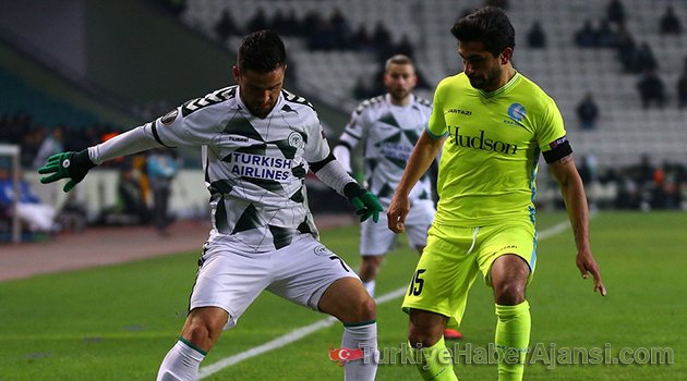 Avrupa Ligi H Grubu 6. maçında temsilcimiz Atiker Konyaspor, evinde Gent'e 1-0 mağlup oldu ve grubu galibiyet alamadan tamamladı.Temsilcimizi yıkan gol 90+5'te oyuna sonradan giren Coulibaly'den geldi. Bu sonucun ardından Konyaspor 1 puanla grubu son sırada tamamladı. Gent ise puanını 8 puanla bir üst tura yükseldi.Grubun diğer maçında Shakhtar Donetsk, deplasmanda Braga'yı 4-2 yendi. Ukrayna ekibi 6'da 6 yaparak grubu lider tamamladı. Braga ise 3. olarak Avrupa'ya veda etti.İLK YARI6. dakikada Gent'in gelişen hızlı atağında, ceza sahası sağ çaprazında topla buluşan Perbet'in sert şutunda meşin yuvarlağı kaleci Serkan Kırıntılı son anda kornere çeldi.7. dakikada Milicevic'in sağdan kullandığı köşe vuruşunda, ceza sahasında iyi yükselen Neto'nun kafa vuruşunda top kaleci Serkan Kırıntılı'da kaldı.19. dakikada Volkan Fındıklı'nın yaklaşık 25 metreden kaleye gönderdiği sert şutta meşin yuvarlağı Gent kalecisi Rinne güçlükle kontrol etti.25. dakikada Milicevic'in sağdan gönderdiği ortasında arka direkte topla buluşan Bruggen'in şutunda meşin yuvarlak kaleci Serkan Kırıntılı'da kaldı.İKİNCİ YARI61. dakikada Gent gole yaklaştı. Saief'in sağdan ortasında ceza sahasında topu önünde bulan Matton'un dönerek şutunda meşin yuvarlağı kaleci Serkan Kırıntılı iki hamlede kontrol etti.69. dakikada Saief'in ceza yayının önünden kaleye gönderdiği sert şutta top, az farkla yandan dışarı çıktı.80. dakikada Skubic'in sağdan ortasında arka direkte topla buluşan Jonsson'un şutunda meşin yuvarlak üstten dışarı çıktı.90+3. dakikada Gent gole yaklaştı. Milicevic'in sağdan ortasında ceza sahasında iyi yükselen Bruggen'in kafa şutunda Serken Kırıntılı meşin yuvarlağı son anda kornere çeldi.90+5. dakikada Gent'e turu getiren gol Coulibaly'den geldi. Mitrovic'in ara pasıyla ceza sahasında topla buluşan Coulibaly'nin sert şutunda meşin yuvarlak ağlara gitti: 0-1ATİKER KONYASPOR: 0 - GENT: 1STAT: Konya Büyükşehir BelediyeHAKEMLER: Jakob Kehlet, Henrik Larsen, Heine Sorensen (Danimarka)ATİKER KONYASPOR: Serkan Kırıntılı, Skubic, Selim Ay, Vukovic, Douglas, Volkan Fındıklı, Jonsson, Mbamba, Ömer Ali Şahiner (Dk. 72 Milosevic), Meha (Dk. 86 Hadziahmetovic), Hora (Dk. 65 Bajic)GENT: Rinne, Foket, Nielsen, Mitrovic, Gershon, Neto (Dk. 68 Esiti), Bruggen, Matton (Dk. 66 Dejaegere), Milicevic, Saief, Perbet (Dk. 66 Coulibaly)GOL: Dk. 90+5 Coulibaly (Gent)SARI KARTLAR: Dk. 77 Esiti (Gent), Dk. 78 Volkan Fındıklı (Atiker Konyaspor)