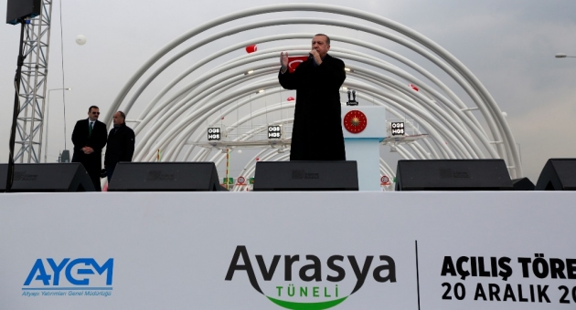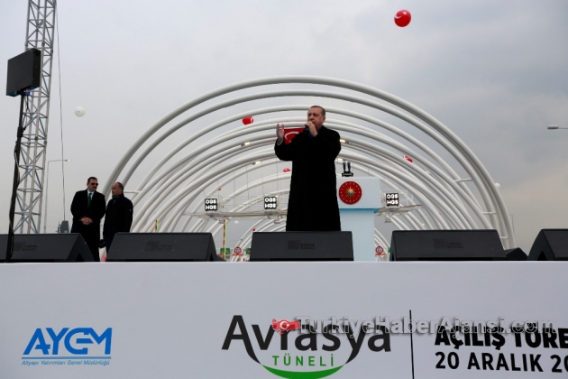 Asya ve Avrupa kıtalarını ilk kez, deniz tabanı altından geçen iki katlı karayolu tüneliyle birbirine bağlayan Avrasya Tüneli, 700 mühendis ve 12.000’den fazla kişinin 14 milyon adam/saat çalışmasıyla, planlanandan 8 ay önce tamamlanarak 20 Aralık 2016 tarihinde Cumhurbaşkanı Recep Tayyip Erdoğan ve Başbakan Binali Yıldırım’ın katıldıkları görkemli bir törenle hizmete açıldı.Konumu, teknik üstünlükleri ve çok yönlü özellikleri ile “tünel inşaatçılığında” çığır açarak dünyanın ilgisini çeken Avrasya Tüneli, kıtalar arası yolculuğu 5 dakikaya indirdi.Törende konuşan Cumhurbaşkanı Recep Tayyip Erdoğan, “Avrasya Tüneli sayesinde İstanbul’un iki yakası arasında dışarıdaki iklim şartlarından etkilenmeden kesintisiz araç ulaşımı mümkün hale geldi” dedi.Cumhurbaşkanı Erdoğan’ın konuşmasının ardından kurdele kesilerek Tünelin resmi olarak açılışı gerçekleştirildi. Avrasya Tüneli 22 Aralık Perşembe günü saat 07.00’den itibaren trafiğe açılacak.Avrupa yakası Kumkapı tünel girişinde düzenlenen açılış törenine Cumhurbaşkanı Recep Tayyip Erdoğan başta olmak üzere Başbakan Binali Yıldırım, Ulaştırma Denizcilik ve Haberleşme Bakanı Ahmet Arslan ve çok sayıda Bakan, Güney Kore Büyükelçisi Yun-Soo Cho, İstanbul Valisi Vasip Şahin, İstanbul Büyükşehir Belediye Başkanı Kadir Topbaş, Yapı Merkezi Holding Yönetim Kurulu Başkanı Ersin Arıoğlu, SK E&C CEO’su Yong Chul Choi, ATAŞ Yönetim Kurulu Başkanı Başar Arıoğlu, ATAŞ CEO’su Seok Jae Seo ve davetliler katıldı.Cumhurbaşkanı Recep Tayyip Erdoğan, açılış törenine yaptığı konuşmasında, Avrasya Tüneli’nin yaklaşık dört yılda tamamlandığını ve birçok ilke imza attığını vurguladı. Cumhurbaşkanı Erdoğan, şöyle devam etti:“Günde 100 bin araç dışarıdaki hava şartlarından etkilenmeden rahat bir şekilde burayı kullanacak. Artık fırtına çıktı, vapur seferleri iptal oldu, sis çöktü, köprüde trafik durdu gibi haberleri geride bırakıyoruz. Avrasya Tüneli sayesinde İstanbul’un iki yakası arasında dışarıdaki iklim şartlarından etkilenmeden kesintisiz araç ulaşımı mümkün hale geldi.”1 Ocak’a kadar toplanan gelirler şehir ailelerine bağışlanacakAvrasya Tüneli'nin geçiş ücretini 15 TL olarak açıklayan Cumhurbaşkanı Erdoğan, 1 Ocak'a kadar elde edilen gelirin şehit ailelerine ulaştırılmak üzere Aile ve Sosyal Politikalar Bakanlığı’na bağışlanacağını söyledi."“Bu eser için devletin kasasından tek kuruş çıkmadı”Avrasya Tüneli’nin inşası için kamu kaynaklarının kullanılmadığını vurgulayan Cumhurbaşkanı Erdoğan, “Bu eser için devletin kasasından tek kuruş çıkmamıştır. Tünelin inşasını ve işletmesini üstlenen firmanın bir bölümü öz kaynak bir bölümü kredi olarak projenin finansmanını kendileri sağlamıştır. Yaklaşık 25 sene boyunca kamu payı ve vergilerle hazineye yılda 180 milyon lira gelir getirecek tünelin işletmesi bu sürenin sonunda tamamen devlete geçecektir” diye konuştu. Erdoğan şöyle devam etti:“Harem ve Çatladıkapı arasındaki Tünel ve geliştirilen yaklaşım yolları sayesinde Kazlıçeşme-Göztepe arası 15 dakikaya iniyor. Bu sayede zamandan ve yakıttan sağlanacak tasarrufu ben sizlerin takdirine bırakıyorum. İlk etapta Ocak sonuna kadar sabah 07.00 ile akşam 21.00 arasında hizmet verecek olan bu Tünel gerekli sistem düzenlemeleri ve diğer ulaşım ağlarıyla operasyon entegrasyon bunlar yapıldıktan sonra inşallah 30 Ocak itibarıyla de 7 gün 24 saat işletmeye geçecektir.”Avrasya Tüneli Müzesi de tamamlandıMüzede, teknolojinin yanı sıra insan gücünün ve yaratıcılığının ürünü olan bu muhteşem eserin baş döndürücü inşaat süreci, en ileri dijital haritalama teknikleriyle anlatılıyor. Avrasya Tüneli Müzesi, etkileşimli dokunmatik tablolar, sanal-gerçeklik gözlükleri, etkileşimli dokunmatik yüzeyleriyle ziyaretçilerin ilgisini çekecek. Tümüyle sürükleyici “surround vision” projeksiyon ortamında, bu süreci dijital şekilde anlatma teknikleri öne çıkıyor.Avrasya Tüneli'nin ilklerle ve başarılarla dolu nefes kesen hikayesi, 2017'de ekranlara getirilmek üzere bir belgesel filmde de anlatılacak.İLKLERE VE REKORLARA İMZA ATILDI18 stadyumluk beton, 10 Eyfel Kulesi kadar demir kullanıldıØ Büyük bir depreme karşı dayanıklılığı artırmak amacıyla monte edilen sismik bilezikler, 106m derinlikte ve 13,7m çapta kullanılması ile ‘dünyadaki ilk’ uygulama oldu.Ø 788 olimpik havuz dolduracak kadar kazı yapıldı. 18 stadyum yapacak kadar beton, 10 Eyfel Kulesi yapacak kadar demir kullanıldı.80 bin metreküp segment üretildi. 60 binden fazla deney yapıldı.Ø Tünel yapısındaki yangın motosikleti, özel çekici, yangın ve devriye araçları ile tüneldeki olumsuz olaylara bir kaç dakika içinde ulaşılacak.Ø İş güvenliği kuralları eksiksiz uygulandı ve14 milyon saatlik toplam çalışma, can kaybı yaşanmadan tamamlandı.Mega Proje, Mimar Sinan’dan çizgiler taşıyorØ Avrasya Tüneli’nin iç mimari ve aydınlatma tasarımlarında, yaklaşım kemerlerinde ve portal girişlerinde, Mimar Sinan’ın eserlerinde yer alan ‘gülbezek’, ‘çarkıfelek’ gibi motif ve çizgilerden esinlenen dış yüzey uygulamaları, eserin içinde saklı mühendislik başarısını ve sağlamlığı dışa vuruyor. Tarihe saygılı tasarım, ‘yeşil’ konsept, kesintisiz ışıklandırma ve akıllı sistemler ile, estetik ve fonksiyonellik en ileri seviyeye ulaştırıldı.Türk ekonomisine büyük katkıØ Yüzde 95’ini Türk çalışanların oluşturduğu projede günde 1800 kişiye istihdam sağlanıyor. Tünel sayesinde yılda toplam 160 milyon TL’lik (38 milyon litre) yakıt tasarrufu sağlanacak. Bu sayede otomobill
