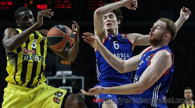 THY Euroleague'in 29. haftasındaki Türk derbisinde Anadolu Efes, son anları nefes kesen maçta sahasında Fenerbahçe'yi 80-77 mağlup etti. Anadolu Efes, bu galibiyetle birlikte play-off'a kalmayı büyük ölçüde garantiledi.Anadolu Efes: 80 - Fenerbahçe: 77Salon: Abdi İpekçiHakemler: Spiros Gkontas (Yunanistan), Emilio Perez Pizarro (İspanya), Seffi Shemmesh (İsrail)Anadolu Efes: Granger 13, Doğuş Balbay 8, Cedi Osman 5, Brown 10, Dunston 14, Heurtel 4, Kirk 5, Paul 10, Honeycutt 9, Thomas 2Fenerbahçe: Ali Muhammed 19, Melih Mahmutoğlu 10, Kalinic 12, Vesely 7, Udoh 8, Berk Uğurlu, Nunnally 5, Antic, Bogdanovic 161. Periyot: 21-14Devre: 44-353. Periyot: 65-54Beş Faulle Çıkan: 34.22 Nunnally (Fenerbahçe)Basketbol THY Avrupa Ligi'nin 28. haftasında iki Türk takımını karşı karşıya getiren maçta Anadolu Efes, sahasında Fenerbahçe'yi 80-77 yendi.Bu sonucun ardından Anadolu Efes ligdeki 16. galibiyetini elde ederek, Fenerbahçe'nin ardından play-off turuna kalmayı garantileyen ikinci Türk ekibi oldu. Son 8'e kalmayı daha önce garantileyen Fenerbahçe ise 11. kez sahadan yenilgiyle ayrıldı.Karşılaşmaya Cedi Osman'ın sayılarıyla 5-0'lık seriyle başlayan Anadolu Efes, Brown'un 4. dakikada üç sayı çizgisinin gerisinden bulduğu isabetle farkı 8 sayıya yükseltti: 10-2. Melih Mahmutoğlu'nun skorer oyunuyla toparlanan Fenerbahçe, 8. dakikada Vesely'nin smacıyla farkı 1 sayıya indirdi: 12-11. Periyot sonunda Dunston, Doğuş Balbay ve Heurtel'den skor katkısı alan lacivert-beyazlılar, ilk çeyreği 21-14 üstün geçti.Müsabakanın ikinci periyoduna Kirk'ün sayılarıyla giren ev sahibi ekip, Heurtel'in 12. dakikada hızlı hücumdan kaydettiği isabetle farkı çift hanelere taşıdı: 26-16. Savunma sertliğini artıran sarı-lacivertliler, rakibin top kayıplarını Kalinic ve Ali Muhammed ile değerlendirerek 15. dakikada farkı 5 sayıya (28-23) indirdi. Paul önderliğinde art arda sayılar üreterek farkı yeniden açan ev sahibi ekip, soyunma odasına 44-35 önde gitti.Maçın ikinci yarısına boyalı alanı iyi kullanarak başlayan Anadolu Efes, Dunston-Brown ikilisiyle etkili oldu. Doğuş Balbay'ın 25. dakikadaki basketleriyle farkı 17 sayıya (55-38) kadar yükselten lacivert-beyazlılar, son çeyreğe 11 sayı farkla (65-54) galip durumda girdi.Mücadelenin son periyoduna Kalinic ve Bogdanovic'in sayılarıyla başlayan sarı-lacivertliler, 32. dakikada farkı yeniden tek hanelere çekti: 67-59. Taraftarının da desteğiyle oyunda kontrolü eline alan sarı-lacivertliler, serbest atış çizgisinden üst üste bulduğu basketlerle 35. dakikada farkı 4 sayıya kadar indirdi: 67-63. Paul ve Granger'ın sayılarıyla toparlanan Anadolu Efes, son 5 dakikaya 71-63 üstün girdi. Son bölüm karşılıklı basketlerle geçilirken, bitime 37 saniye kala Ali Muhammed ile dış atış isabeti sağlayan Fenerbahçe, farkı 2 sayıya (78-76) düşürdü. Fenerbahçe, Anadolu Efes'in mola dönüşünde Granger ile yaptığı top kaybını Bogdanovic ile skora dönüştüremeyince, Honeycutt ile çizgiden 2 sayı daha üreten ev sahibi takım son 15 saniyede farkı 4 sayıya yükseltti: 80-76. Anadolu Efes, Paul ile serbest atışlardan yararlanamayınca, son hücum fırsatı yakalayan Fenerbahçe, bu şansı Ali Muhammed ile skora yansıtamadı ve lacivert-beyazlılar sahadan 80-77 galip ayrıldı.Maçın en skorer oyuncusu, Fenerbahçe formasıyla 19 sayı üreten Ali Muhammed olurken, Bogdanovic 16 sayıyla takımına katkı sağladı. Anadolu Efes'te ise Dunston'ın 14, Granger'ın 13, Paul ile Brown'un 10'ar sayısı galibiyette önemli rol oynadı.