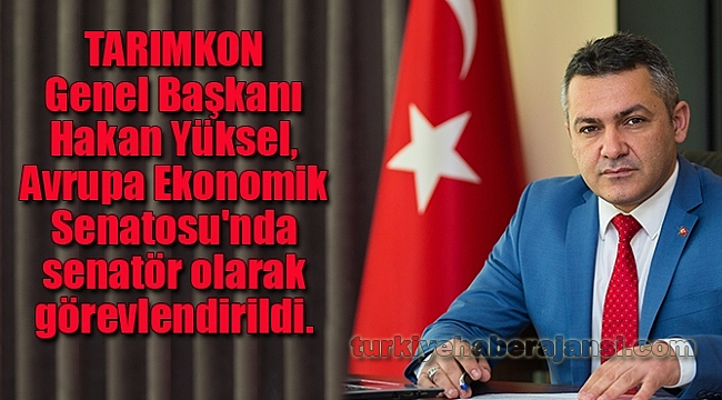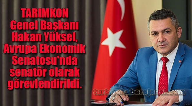 TARIMKON Genel Başkanı Hakan Yüksel, Avrupa Ekonomik Senatosu'nda senatör olarak görevlendirildi. Türkiye ekonomisine değer katmaya devam eden Uluslararası Tarım ve Gıda Konfederasyonu Başkanı Hakan Yüksel Avrupa Ekonomik Senatosu'na giren İlk Türk oldu.