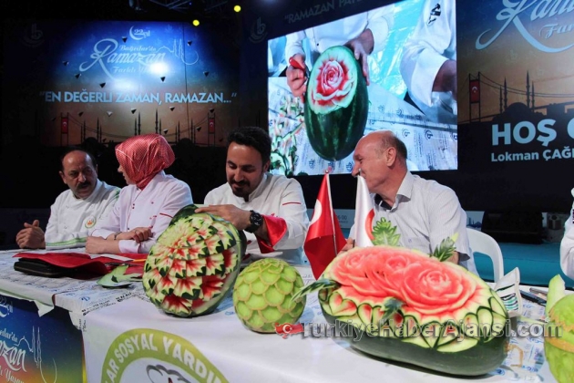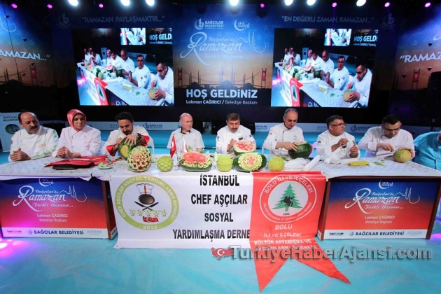Bağcılar ailesi, Bağcılar Belediyesi’nin Kirazlı Ramazan Etkinlik Alanı’nda düzenlediği Sahur Programı’nda aynı sofrayı paylaştı.Bağcılar Belediyesi tarafından düzenlenen sahur programında yöresel ürünlerden tadan davetliler birbirleriyle bolca sohbet etti. Programda bir konuşma yapan Bağcılar Belediye Başkanı Lokman Çağırıcı, müminler olarak mübarek Ramazan ayının bereketinden en iyi şekilde faydalanmaya çalıştıklarını belirtti. Kurdukları iftar sofralarında her gün 5 bin hemşehrisini ağırladıklarını da ifade eden Çağırıcı, her yaştan hemşehrisine yönelik kültürel etkinlikler gerçekleştirdiklerini söyledi. Bağcılar’da Ramazan ayını her yıl anlamına uygun programlarla yaşadıklarını da ifade eden Çağırıcı, “Allah (c.c) tuttuğumuz ve tutacağımız oruçlarımızı kabul etsin. Ramazan ayı günahlarımızdan arınmamıza vesile olsun” dedi.‘’SOSYAL MEDYA ARACILIĞIYLA HASRET GİDERDİLER”Bağcılar Belediyesi farklı bir uygulama gerçekleştirerek, sahur programını sosyal medya aracılığıyla canlı yayınladı. Türkiye’nin dört bir yanından cep telefonları aracılığıyla yayına katılanlar mesajlarını ileterek akraba ve tanıdıklarıyla hasret giderdi. Programda Bolu Yardımlaşma ve Dayanışma Derneği ile Şef Aşçılar Derneği’nin karpuz ve kavundan yaptıkları görsel çalışmaları ilgi gördü. Gösteri sırasında Başkan Çağırıcı’nın resmi de karpuz üzerine çizildi.Programa AK Parti İlçe Başkanı İsmet Öztürk, İlçe Milli Eğitim Müdürü Mustafa Yılmaz, Sivil Toplum Kuruluşu temsilcileri ile ilçe sakinleri katıldı.