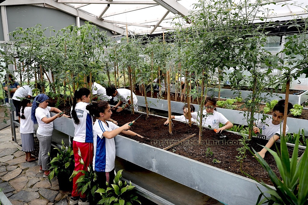 Bağcılar Belediyesi Bilgi Evleri Botanik Bahçesi’nde toprakla uğraşan çocuklar hem terapi görüyor hem de eğlenceli zaman geçiriyor. Öğrencilerden kimi elinde çapası tırmığıyla bitki ekerken kimi de kumdan kaleler yaparak oyun oynuyor. 10 yaşındaki Hilal ise kendi yetiştirdiği ve Domto adını verdiği domates bitkisiyle arkadaş oldu. Domto’yla sohbet ettiğini söyleyen Hilal, “Biz çok iyi arkadaşız. Beni dinliyor ve çok iyi anlıyor. Ona ‘Sen çok güzelsin’ diyorum, iltifat ediyorum. Konuşunca daha çok domates veriyor” dedi.Yaz tatilini İstanbul’da geçiren çocuklar, bağcılar belediyesi Bilgi Evleri tarafından düzenlenen aktivitelere katılarak zamanını en iyi şekilde değerlendiriyor. 16 Bilgi Evi’nde yaz nedeniyle en çok rağbet gören yerlerin başında ise 1000’e yakın öğrencinin katılım gösterdiği Botanik Kulübü geliyor.Sabah 09.00’da eline çapasını, tırmığını, küreğini ve sulama aparatını alan öğrenciler eğitmenleri eşliğinde Botanik Bahçesi’ne giriyor. Toprakla buluşan çocuklardan kimi domates, biber, patlıcan, maydanoz, kıvırcık çeşitleri bulunan bitkilerden ekerken kimi de çiçekleri suluyor. Kirlenmeyi düşünmeden elleriyle toprağı kazarak hoşça vakit geçirenlerin yanında kumdan kaleler yaparak oyunlar oynayanlar da göze çarpıyor.“Konuşunca daha çok domates veriyor”Eğitmenler, çocukların teknolojiden uzak toprakla yoğrulan çamurlu elleriyle hem bedensel hem de ruhsal gelişimlerinin yaşıtlarına göre daha hızlı ilerlediğini söyledi. Bu etkinlik sayesinde bitkilerin bir tohumken nasıl sebzeye dönüştüğüne anbean tanıklık edildiği belirtildi.10 yaşındaki Hilal Kara da Koca Yusuf Bilgi Evi Botanik Bahçesi’nin müdavimlerinden. Hilal’i buraya bağlayan ise kendi ekip büyüttüğü ve Domto ismini verdiği domates bitkisi. Domto’yla arkadaş olduğunu söyleyen Kara, “Toprakla uğraşmayı çok seviyorum. Hocalarımın öğrettiği şekilde buraya bir domates ektim. Büyüyünce adını Domto koydum. Domto büyüdü ve domatesler verdi. Bu bahçede en çok ürün veren de o oldu. Biz çok iyi arkadaşız. Beni dinliyor ve çok iyi anlıyor. Ona ‘Sen çok güzelsin’ diyorum, iltifat ediyorum. Konuşunca daha çok domates veriyor” dedi.Gün sonunda çocuklar eller kirli ve bedenleri yorgun olmasına rağmen yüzleri gülerek Botanik Bahçesi’nden ayrılıyor.