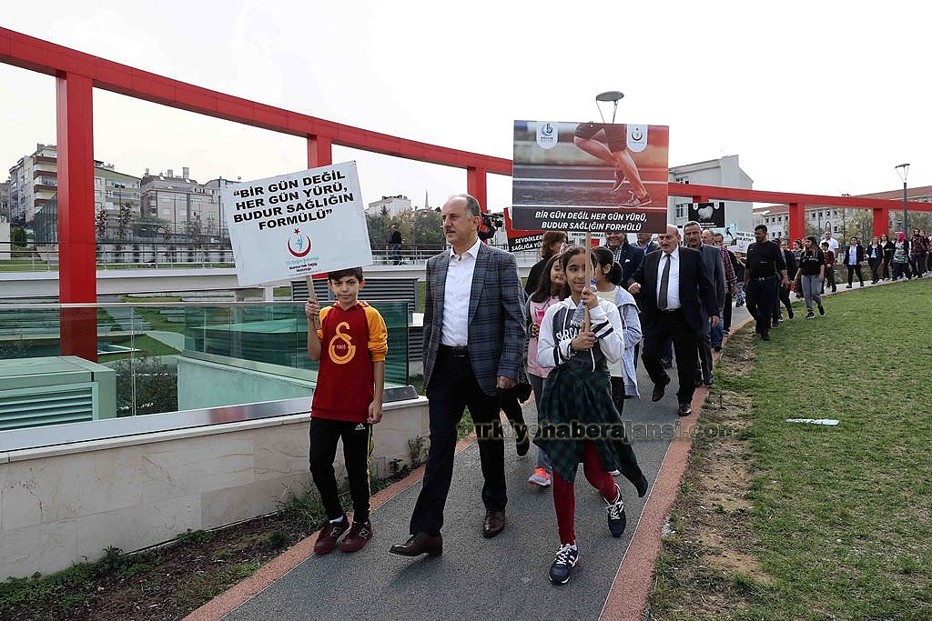 “Yürüyen merdivenler değil yürüyen ayaklar”Bağcılar Belediye Başkanı Lokman Çağırıcı’nın önderliğinde başlayan yürüyüşte İlçe Milli Eğitim Müdürü Mustafa Yılmaz da öğrencilerin arasında yerini aldı. Minikler ellerinde obeziteye savaş açan “Bir gün değil her gün yürü budur sağlığın formülü”, “Şişmanlık kaderiniz değil”, “Tuzu azaltın tadınız kaçmasın”, “Attığınız her adım sağlığa yatırım”, “Yürüyen merdivenler değil yürüyen ayaklar” ve “Günde 10.000 adım atın” yazılı pankartlar taşıdılar.“Yürüyüş hem beden hem ruh sağlığını koruyor”Düzenli yürüyüşün önemini vurgulayan Bağcılar Belediye Başkanı Lokman Çağırıcı, “Bugün sağlıklı yaşama dikkat çekmek amacıyla buradayız. Yürüyüş yapmak hem beden hem ruh sağlığını koruyor. Hareketli yaşam, bizim için, kalbimiz ve sağlığımız için çok önemli. O yüzden hareketi, sporu, yürüyüşü hayatımızdan eksik etmeyelim. Her gün düzenli olarak 10 bin adım yürüyerek zinde kalalım ve dinamik olalım” dedi.Yoğun ilgi gören yürüyüş sonunda katılımcılara elma ve su ikram edildi.
