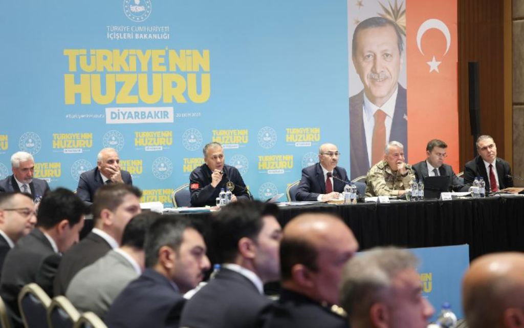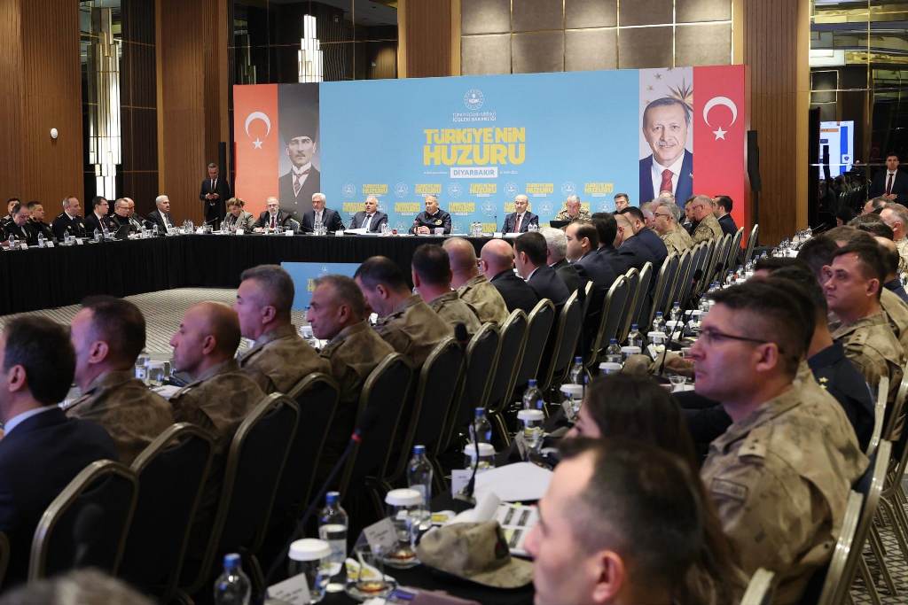 'Türkiye’nin Huzuru Toplantısı' İçişleri Bakanı Ali Yerlikaya’nın başkanlığında Diyarbakır’da gerçekleştirildi. Toplantıya İçişleri Bakanı Ali Yerlikaya ile birlikte, Jandarma Genel Komutan Yardımcısı Orgeneral Hüseyin Kurtoğlu, Emniyet Genel Müdürü Mahmut Demirtaş, Diyarbakır Valisi Murat Zorluoğlu, AK Parti Diyarbakır Milletvekilleri Mehmet Galip Ensarioğlu, Mehmet Sait Yaz ve Suna Kepolu Ataman, AK Parti Diyarbakır İl Başkanı Ömer İler, MHP Diyarbakır İl Başkanı Miktat Arslan, bakanlık bürokratları ve Diyarbakır il protokol mensupları katıldı.