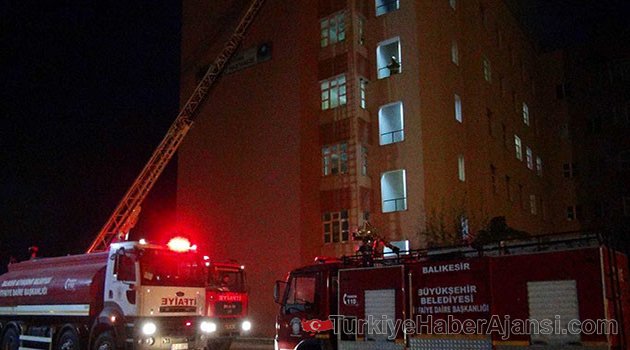 Bandırma Devlet Hastanesi'nin çatı katında bulunan Fizik Tedavi Bölümü'nde, bu akşam saatlerinde henüz belirlenemeyen nedenle yangın çıktı.İhbar üzerine olay yerine sevk edilen Bandırma Belediyesi ve Balıkesir Büyükşehir Belediyesi'ne ait 7 itfaiye aracı, yangına müdahale etti.Bu sırada görevliler de yangının çıktığı bölüm ile alt katında yatan hastaları kantine taşıdı. Ekiplerin yoğun çabası sonucu yangın kontrol altına alındı.Olay yerine gelip çalışmaları yakından takip eden Bandırma Kaymakamı Tuncay Sonel, "Yangın haberini alınca hemen müdahale ettik. Şu anda kontrol altına alınan yangını söndürme çalışmaları sürüyor" dedi.