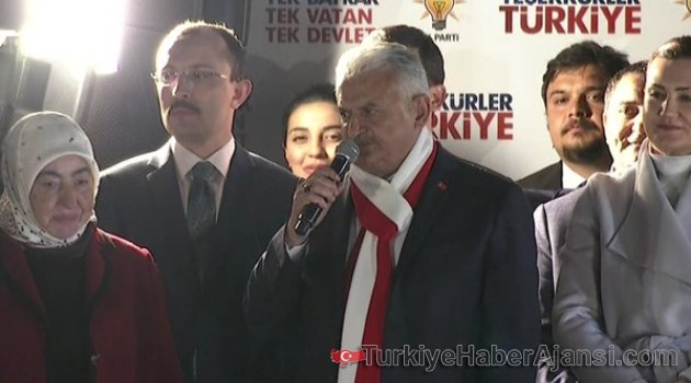 Başbakan Binali Yıldırım, Cumhurbaşkanlığı hükümet sistemi halk oylaması sonuçlarının açıklanmasının ardından parti genel merkezinde balkon konuşması yaptı. Başbakan yaptığı konuşmada tüm Türkiye'yi kucaklayarak, "Açıkça söylüyorum, bu halk oylamasının kaybedeni yoktur, kazanan Türkiye’dir, kazanan aziz milletimdir. Şimdi artık dayanışma, bir olma, beraber olma, birlikte Türkiye olma zamanıdır" dedi.İşte O Konuşmadan Satır Başları:"Bilmeyen öğrensin, duymayan duysun, kardeşiz, tek vücut tek bir milletiz. Bölücü hainler aklına koysun tek bir milletiz. Anayasa değişikliği referandumu gayri resmi sonuçlara göre evetle sonuçlanmıştır. Demokrasimize sahip çıkan tüm vatandaşlarımıza teşekkür ediyorum.DEMOKRASİMİZDE YENİ BİR SAYFA AÇILDIHalk oylamasının güvenliği sağlayan tüm görevlilere milletim adına teşekkür ediyorum. Bugün ilk kez bu halk oylamasında sandığa giden 1 milyon 269 bin gencimizi özellikle kutluyorum. huzur içinde neticelenen bu oylama milletimizin kendi kararı ile verdiği bir seçimdir. Demokrasi tarihimizde bu oylama ile yeni bir sayfa açıldı.BU SONUCU EN İYİ ŞEKİLDE DEĞERLENDİRECEĞİZTeşekkürler Türkiye Herkes emin olsun ki çıkan bu sonucu en iyi şekilde değerlendireceğiz. Bir özel teşekkür ve bir selam kurucu genel başkanımız liderimiz sayın cumhurbaşkanımız Recep Tayyip Erdoğan'a teşekkür ediyorum. Kendisini buradan defalarca bu balkon konuşmasını yaptığı yerden sevgiyle saygıyla bütün teşkilatım adına selamlıyorum.Demokratik tercihin ortaya çıkması hepimiz çok çalıştık. Gayret ettik. Bu sürede sahaya çıkan herkese, ülkem adına, milletim adına, demokrasi adına şükranlarımı sunuyorum. Kampanya boyunca bizi bir an bile yalnız bırakmayan siz yol arkadaşlarıma teşekkür ediyorum.SON SÖZÜ MİLLET SÖYLEDİBu anayasa değişikliğinde beraber çalıştığımız MHP Genel Başkanı Sayın Devlet Bahçeli ve partisinin bütün teşkilatlarına teşekkür ediyorum. Ayrıca bu süreçte diğer partilerimize de, halk oylaması sürecinde yaptıkları olumlu katkılarından dolayı saygılarımı sunuyorum. Durmak yok, kaldığımız yerden yola devam ediyoruz. Elbette farklı düşüncelerimiz, çözüm önerilerimiz olacak. Ama neticede birliğimizi beraberliğimizi gözümüz gibi koruyacağız. Demokrasimizin güzelliği de budur. Meydanlarda farklı şeyler söyledik. Millete farklı şeyler anlattık. Ama son sözü millet söyledi. Evet dedi, noktayı koydu.DIŞ MİHRAKLARA EN GÜZEL CEVAPYola çıkarken söylediğimiz gibi halkın iradesi nasıl tecelli ederse o sonuç başımızın tacıdır dedik. Halkımız seçimini yapmış cumhurbaşkanlığı yönetim sistemine olur vermiştir. Bu ülke bu millet artık hiçbir vesayete, hiçbir harici müdahaleye hiçbir tehdide boyun eğmeyeceğini bir kez daha göstermiştir. Bu seçimlerle, 15 Temmuz alçak girişimini yapan terör örgütüne, bölücü terör örgütüne Türkiye’ye düşmanlık yapan dış mihraklara en güzel cevabı milletimiz sandıkta vermiştir.BU HALK OYLAMASININ KAYBEDENİ YOKTURBu seçimler Türk demokrasisinin olgunluk düzeyini bütün dünyaya göstermiştir. Bizler Türkiye Cumhuriyeti devletinin birinci derece eşit vatandaşlarıyız. Meşru siyasi alandaki siyasi rekabet, birlik ve bütünlüğümüzü asla bozamaz, bozamayacaktır. vatandaşlarımızın tercihi doğrultusunda geleceği güven içinde inşa edeceğiz. Açıkça söylüyorum, bu halk oylamasının kaybedeni yoktur, kazanan Türkiye’dir, kazanan aziz milletimdir. Şimdi artık dayanışma, bir olma, beraber olma, birlikte Türkiye olma zamanıdır. Sandıkta bizim tercihimiz evet çıktığı için mutluyuz."