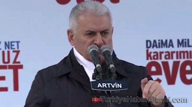 Başbakan Binali Yıldırım, Artvin mitinginde terör örgütlerine seslenerek "Ne yaparsanız yapın 'Evet' çıkacak sizinde defteriniz dürülecek." dedi.