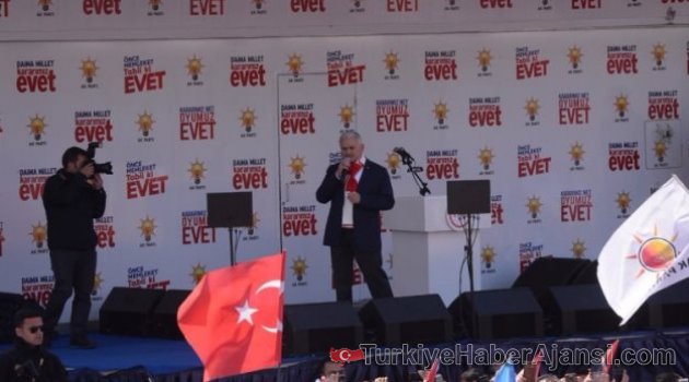 İşte o konuşmadan satır başları"Biz beraberce tarihe beraberce yön vermiş bir milletiz. Selçuklu'da, Osmanlı'da, Kurtuluş savaşında, Çanakkale'de beraberdik, omuz omuzaydık. İster Kürt olalım, ister Arap olalım, kimliğimizle iftihar edilim. Ama Siirtli kardeşlerim bir de ayyıldızlı bayrağımızla şeref duyalım.SİİRT EVLADINA SAHİP ÇIKTISiirt'in bizim için ayrı bir önemi var. Cumhurbaşkanımız için ayrı bir önemi var. Sene 1997 Cumhurbaşkanımızı İstanbul Büyükşehir Belediye Başkanı iken burada, Siirt'te ders kitaplarında olan bir şiiri okudu diye siyasi yasaklı hale geldi. Hapse koydular. 'Muhtar bile olamaz' dediler. Ancak Siirt evladına sahip çıktı, damadına sahip çıktı. Recep Tayyip Erdoğan'ı Cumhurbaşkanı yaptınız, Allah sizden razı olsun. Cumhurbaşkanımız ilk Cumhurbaşkanlığına ilk burada başladı.TÜRKİYE BU KÖHNE SİSTEMLE DEVAM ETMEK ZORUNDA MIAK Parti ile birlikte millet devletiyle buluştu, bir oldu beraber oldu. Bu birliktelik büyü atılımların yapılmasını sağladı. Gelecek nesillere kalacak olan getireceğimiz sistemdir. Bu anayasayı yapanlar yok oldu gitti ama Türkiye onların bu köhne anayasasıyla devam etmek zorunda mı?Getirilen bu sistemle iki seçimi bir günde yapacağız. Birinci seçim cumhurbaşkanı için. İkici seçim milletvekilleri için. Artık Başbakan ile Cumhurbaşkanı'nın arası bozuldu diye ekonomi çökmeyecek.KILIÇDAROĞLU SEN KOLTUĞUNA YAPIŞMIŞSINEy Kılıçdaroğlu, Binali bey koltuk meraklısı değil. Memleketim için 'bir ali değil, bin ali feda olsun.' Ama sen kendine bak Kılıçdaroğlu. 7 seçim kaybetmişsin, hala koltuğuna yapışmışsın.. Bir de kalkmış Cumhurbaşkanı'na 'tek adam' diyorsun. Milletin seçtiği, tek adam olmaz.Ey Kılıçdaroğlu sen bırak salon salon gezmeyi de, Siirt'e gel, Pervari'ye gel, Hakkari'ye gel. Buralarda konuş"