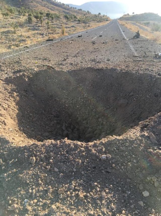 YOLDA DEV ÇUKUR OLUŞTUPatlamayla birlikte asfalt yolda 1,5 metre derinliğinde 4,5 metre çapında geniş çukurun oluştuğu görüldü. PKK'lı teröristlerin, el patlayıcıyı önceden yola tuzakladığı, kablolu düzenekle uzaktan kumandayla infilak ettirdiği saptandı.