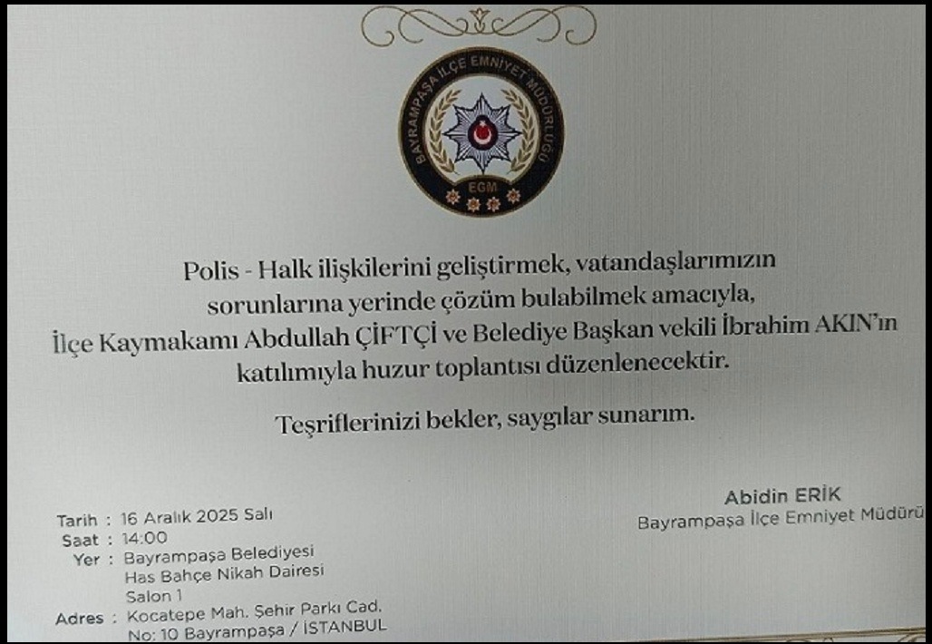 İstanbul Bayrampaşa İlçe Emniyet Müdürlüğü’nce 2025 yılı Huzur Toplantısı dün gerçekleştirildi. Toplantı'ya katılan vatandaşlar ilçe genelinde otopark sayısı yetersiz olduğundan dolayı en çok Trafik sorunu olduğunu belirterek, trafik ihlallerine polis ekiplerinin yeterince müdahalede bulunmamasından ve polis ekiplerinin görünürlüğünün az olduğundan yakındılar.