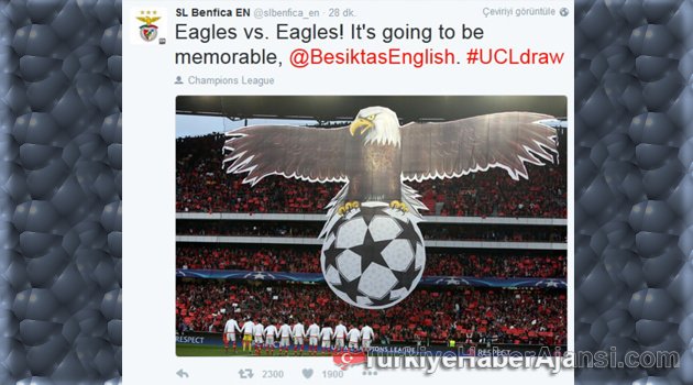 Beşiktaş gibi sembolü "Kartal" olan Benfica, twitter üzerinden Beşiktaş'ın İngilizce hesabını ekleyerek, "Kartallar, Kartallar'a karşı! Bu unutulmaz olacak." ifadelerini kullandı.
