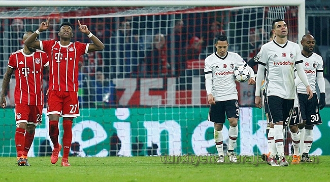 Beşiktaş, Şampiyonlar Ligi Son 16 Turu ilk maçında deplasmanda Bayern Münih ile karşılaştı.G Grubu'nu 14 puanla ve namağlup lider olarak tamamlayan siyah-beyazlılar, Allianz Arena'daki karşılaşmaya Fabri - Adriano, Pepe, Vida, Caner - Hutchinson, Medel - Quaresma, Talisca, Babel, Vagner Love 11'iyle çıktı.Bayern Münih'in 11'i ise Ulreich - Kimmich, Boateng, Hummels, Alaba - Martinez - Müller, Vidal, James Rodriguez Coman - Lewandowski şeklindeydi.Beşiktaş karşılaşmanın 16. dakikasında 10 kişi kaldı. Bu dakikada Lewandowski ceza sahasına girmeden önce Vida'nın müdahalesiyle yerde kaldı. Karşılaşmanın hakemi Hategan, Beşiktaş'ın Hırvat stoperi Vida'yı doğrudan kırmızı kartla oyun dışında bıraktı.Beşiktaş, Vida'nın kırmızı kart görmesinden 2 dakika sonra Vagner Love ile önemli bir fırsattan yararlanamadı. Bu dakikada Kimmich'in hatasında topu kapan Vagner Love; Hummels ve Boateng'i geçtikten sonra ceza alanı çizgisi üzerinden vuruşunu yaptı. Bu vuruşta top üstten auta gitti.Bayern Münih, 30'da gole çok yaklaştı. James Rodriguez'in soldan ortaladığı topa ceza alanında Hummels kafayla vurdu. Kaleci Fabri son anda topu kornere çeldi.GOL: Bayern Münih, 43. dakikada öne geçti. Bu dakikada Ev sahibi ekipte Coman'ın soldan ceza alanına girerek ortaladığı topu Alaba, Thomas Müller'e aktardı. Müller'in yerden vuruşunda topu filelere gittiBayern Münih'te James Rodriguez ilk yarının sonunda sakatlanıp soyunma odasına gitti. Kolombiyalı futbolcunun yerine 44'te Arjen Robben oyuna girdi.İlk yarı Bayern Münih'in 1-0 üstünlüğüyle bitti.Bayern Münih maçın ikinci yarısını tempolu başladı. 50'de Robert Lewandowski'nin ceza sahasının hemen dışından kullandığı frikikte top direkten döndü.GOL: 52'de Bayern Münih skoru 2-0 yaptı. Bu dakikada Lewandowski'nin pasında vuruşunu yapan Kingsley Coman topu ağlarla buluştu.Beşiktaş Teknik Direktörü Şenol Güneş, 57. dakikada Vagner Love-Dusko Tosic değişikliğini yaptı.GOL: Bayern Münih, 66. dakikada skoru 3-0'a getirdi. Bu dakikada Robben'in pasında topla buluşan Kimmich sağ kanattan orta yaptı. Altı pasın içinde topla buluşan Thomas Müller'in vuruşunda Fabri'nin müdahalesi yeterli olmadı ve top ağlarla buluştu.Beşiktaş'ta 69. dakikada Caner Erkin çıktı, yerine Gökhan Gönül girdi.GOL: Bayern Münih, 79. dakikada skoru 4-0 yaptı. Bu dakikada Hummels'in ceza alanı dışından yaptığı vuruşta Fabri uzanarak gole izin vermedi emi ancak dönen topu takip eden Lewandowski topu ağlarla buluşturdu.GOL: Bayern Münih, 88'de skoru 5-0'a getirdi. Bu dakikada Robben'in sağ taraftan attığı pasta ceza alanında topla buluşan Thomas Müller ters taraftaki Lewandowski'ye pasını gönderdi. Lewandowski sol ayağıyla topu ağlara gönderdi.Allianz Arena'daki karşılaşmada Bayern Münih, Beşiktaş'ı 5-0 mağlup etti. Karşılaşmanın rövanşı 14 Mart'ta Vodafone Park'ta oynanacak.