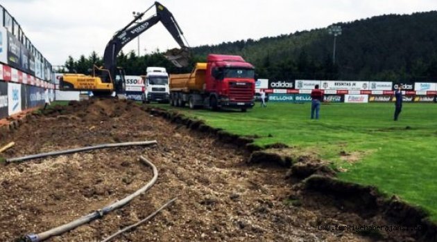 Beşiktaş'ın idmanlarını gerçekleştirdiği BJK Nevzat Demir Tesisleri'nde antrenman sahalarını yenileme çalışmaları tüm hızıyla sürüyor.