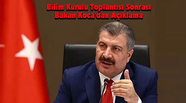 Sağlık Bakanı Fahrettin Koca bilim kurulu toplantısı sonrası yaptığı açıklamada, "Aşı olmayı erteleyenlerimiz var. Aşı olmamakla bugün risk alsalar da, bilim insanları onlara ikna edici açıklamaları sundukça, düşünceleri değişecektir. Sağlık; kararsızlığa, karşıtlığa elverişli değildir. İnsanlığın ve bilim dünyasının tamamına yakını ise yanlışta birleşmez." ifadelerini kullandı.Sağlık Bakanı Fahrettin Koca, “18 yaş ve üstü nüfus için yaptığımız aşılama takvimine sadığız. Bugün 19.00 itibariyle 74 milyon 334 bin 980 doz aşı uygulandı. İlk doz aşısını yaptıranların oranı yüzde 66’nın üzerinde. İlk doz oranının, tedarikte yaşanan zorluk aşılır aşılmaz hızla bu düzeylere ulaşması toplumun aşı kararlılığının kanıtıdır” dedi.BİLİM KURULU ONLINE TOPLANDI