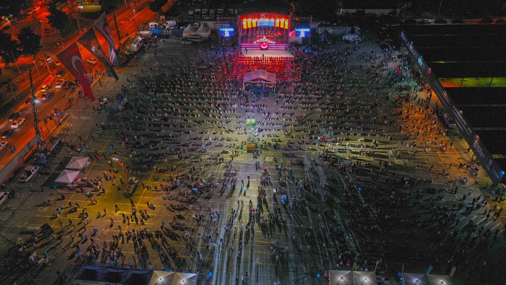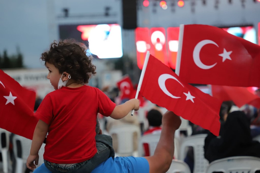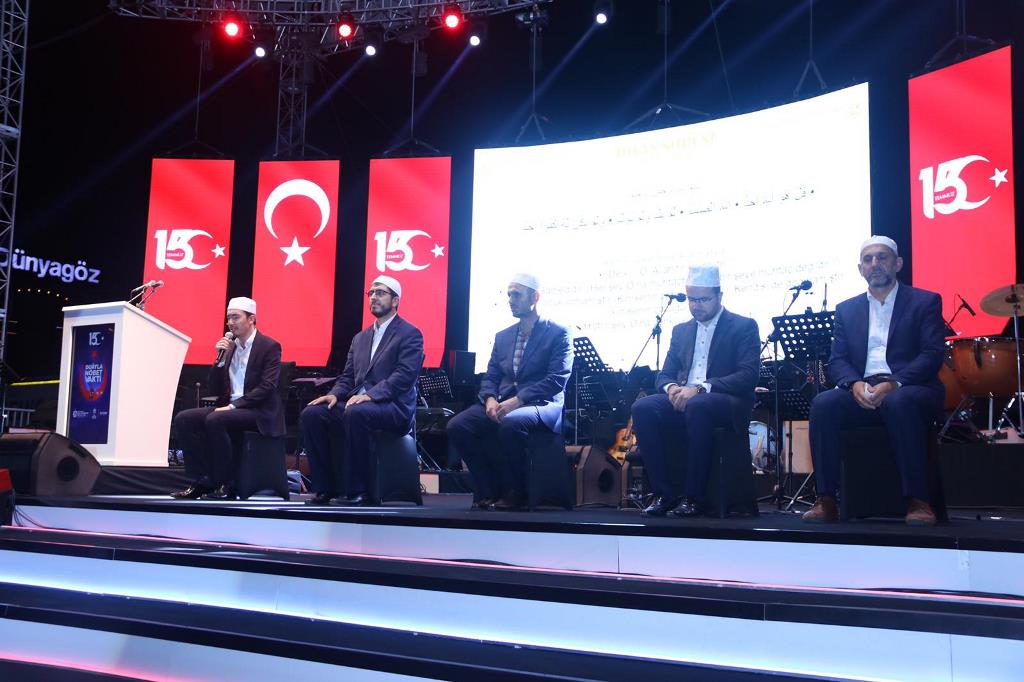 “MİLLETİMİZİN SÖYLEYECEK DAHA ÇOK SÖZÜ VAR”Program dahilinde Cumhurbaşkanımız Recep Tayyip Erdoğan’ın yaptığı konuşma da alandaki ekranlardan canlı olarak yayınlandı. Ulusa Sesleniş konuşmasında Başkan Erdoğan, “Kim ne kadar uğraşırsa uğraşsın, ezanımızı susturamayacak bayrağımızı indiremeyecek” dedi. “Bu milletin söyleyecek daha çok sözü var” şeklinde konuşan Başkan Erdoğan, “Savaş uçağına levye atan bir milletin önünde kim durabilir” ifadelerini kullandı.