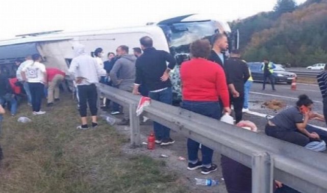 TEM Otoyolu Bolu geçişinde şehirlerarası yolcu otobüsünün devrilmesi sonucu 3 kişi hayatını kaybetti. Sağlık Bakanı Fahrettin Koca, kazada 2'si ağır olmak üzere 32 kişinin yaralandığını duyurarak, 27 kişinin tedavisinin sürdüğünü bildirdi.Anadolu Otoyolu'nun Bolu kesiminde yolcu otobüsünün devrilmesi sonucu 3 kişi yaşamını yitirirken, 16 kişi yaralandı.Alınan bilgiye göre Köroğlu Dinlenme Tesisleri yakınlarında yolun sağındaki bariyerleri kırarak devrilen otobüs kazası üzerine bölgeye çok sayıda sağlık, itfaiye, polis ve jandarma ekibi sevk edildi.Bolu Valisi Erkan Kılıç, kaza yerinde incelemerde bulundu. 37 yolcunun bulunduğu otobüste ilk belirlemelere göre 3 kişinin vefat ettiğini duyuran Vali Kılıç, 16 kişinin de yaralı olduğunu duyurdu.Sağlık Bakanı Fahrettin Koca da, sosyal medya hesabından yaptığı paylaşımda, yaralılar ilgili bilgi verdi. Kazada 2'si ağır olmak üzere 32 kişinin yaralandığını duyuran Bakan Koca, 27 kişinin tedavisine halen devam edildiğini belirterek, "Kaybettiğimiz vatandaşlarımıza Allah'tan rahmet, ailelerine başsağlığı, yaralılarımıza acil şifalar diliyorum" ifadelerini kullandı.OIayla ilgili geniş çaplı tahkikat sürüyor.