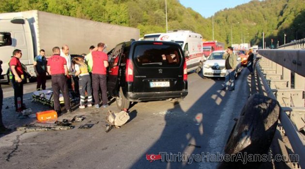 Alınan bilgiye göre, otoyoldan Ankara istikametine giden Mustafa Ertürk idaresindeki 41 ND 757 plakalı hafif ticari araç, Çaydurt gişelerine iki kilometre kala, henüz bilinmeyen bir nedenle kontrolden çıkarak takla attı.Kazada, araçta bulunan Şaduman Özgenç (61) olay yerinde hayatını kaybederken, araç sürücüsü ile Şeyda Özgenç Ertürk (29), Nisanur Ertürk (6), Sahranur Ertürk (10) ve Şüheyda Özgenç (22)Sağlık ekiplerince kentteki çeşitli hastanelere kaldırılan yaralılardan Şüheyda Özgenç, yapılan müdahalelere rağmen kurtarılamadı.Yaşamını yitirenlerin cesetleri İzzet Baysal Devlet Hastanesi Köroğlu Ünitesi morguna kaldırıldı.Bu arada yaralılardan bazılarının sağlık durumunun ciddiyetini koruğu öğrenildi.