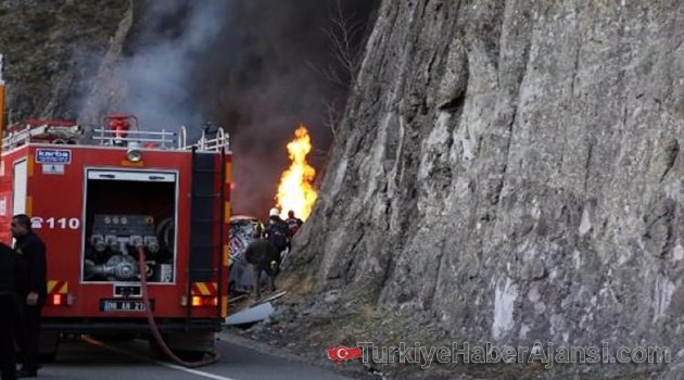 Trabzon’dan Ardahan'a mazot götüren 54 yaşındaki Tekin Aydın yönetimindeki 75 AS 708 plakalı tanker, Borçka İlçesi İbrikli Köyü yakınlarında virajda kontrolden çıkıp devrildikten sonra alev aldı. Araçta sıkışan Tekin Aydın, diğer sürücüler tarafından kurtarıldı. İhbar üzerine olay yerine sevk edilen itfaiey ekipleri, yaklaşık 2 saatlik müdahaleyle yangını kontrol altına alıp söndürdü.Kaza nedeniyle kapanan Borçka - Ardahan karayolu, yangının söndürülüp aracın kaldırılmasının ardından yeniden ulaşıma açıldı.
