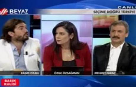 Beyaz TV, dün yine sert bir tartışmaya sahne oldu. Dün gece yayınlanan Basın Kulisi programında, Mehmet Faraç ile Rasim Ozan Kütahyalı arasında yaklaşık 20 dakika süren sert bir tartışma yaşandı. Faraç'ın, Kütahyalı'ya yönelik söylediği "reklam arasında talimat aldı" iddiası, Rasim Ozan Kütahyalı'yı adeta çıldırttı. İkili arasındaki tartışma program bitene kadar devam etti.
