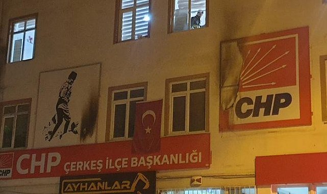 Çankırı'da CHP Çerkeş İlçe Başkanlığı'nda hareketli anlar yaşandı. Şüpheli ya da şüpheliler tarafından CHP Çerkeş İlçe Başkanlığı binasına yanıcı madde atıldı. Çıkan yangına vatandaşlar müdahale etti. Öte yandan Çankırı Valisi Abdullah Ayaz yaptığı açıklamada olayla ilgili bir şüphelinin gözaltına alındığını duyurdu.