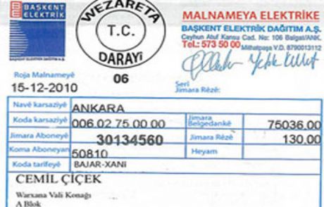 İki dilli yaşam tartışması bitmiyor. Kürtçe etiket olabileceğini ancak Kürtçe fatura olamayacağını söyleyen Başbakan Yardımcısı Cemil Çiçek'e Genç Siviller'den Kürtçe 147 TL'lik elektrik faturası düzenlendi.