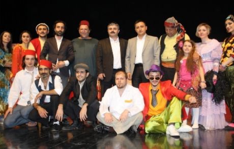 OYUNCULARI KUTLADI Oyunun sonunda Kültür Sanat ve Konservatuar Şube Müdürü İsmail Civelek, sahneye çıkarak sanatçıları oyundaki performansları nedeniyle kutladı.