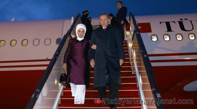 Cumhurbaşkanı Recep Tayyip Erdoğan, özel uçak 'TUR' ile TSİ 22.45'te Özbekistan'ın Semerkant şehrine indi.