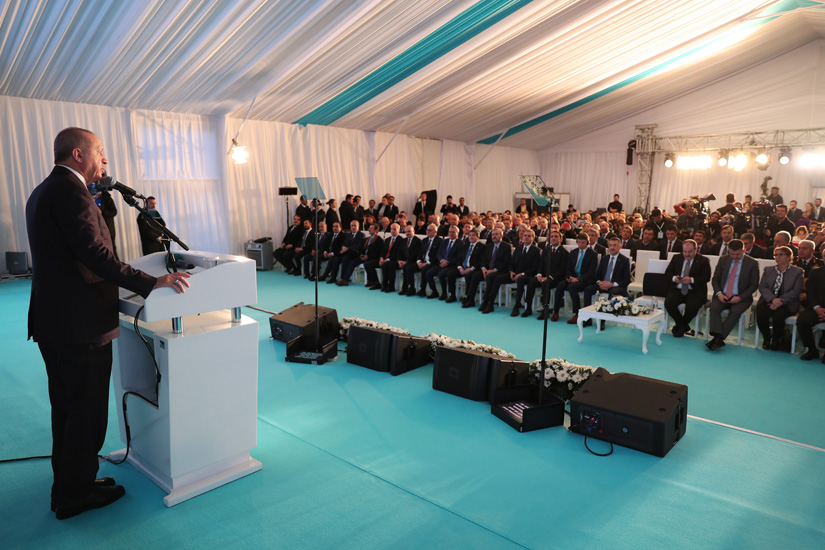 “HİÇBİR DEVLET 15 TEMMUZ GİBİ BİR İHANETİ TÜRKİYE KADAR DİRAYETLE ATLATAMAZDI”“Ekonomisi bizden ileride olanlar dâhil hiçbir devlet özellikle 15 Temmuz gibi bir badireyi böyle büyük bir ihaneti Türkiye kadar dirayetle atlatamazdı” diyen Cumhurbaşkanı Erdoğan, bugün kimi Avrupa ülkelerine bakıldığında bu gerçeğin çok net biçimde görüleceğini, şiddet düzeyi Gezi olaylarıyla kıyas dahi edilemeyecek toplumsal olayların ne tür sıkıntılara sebebiyet verdiğine şahit olunduğunu söyledi.15 Temmuz darbe teşebbüsünün ardından ilan ettikleri OHAL uygulamasını eleştirenlerin, 3-5 günlük sokak olayları için hemen OHAL seçeneğini gündeme getirdiklerine dikkat çeken Cumhurbaşkanı Erdoğan, “Senelerdir bize insan hakları derse verenler bugün kapılarına dayanan birkaç bin mülteciyi toplama kamplarına mahkûm ediyorlar” diye konuştu. Cumhurbaşkanı Erdoğan, “On yıllardır PKK terörüyle mücadelemize laf söyleyenler, bugün DEAŞ’ın kanlı eylemleri karşısında en sert tedbirleri almaktan çekinmiyorlar. Bizi eleştirdikleri, bizi itham ettikleri ne varsa bugün kat be kat fazlasını kendileri yapıyorlar” sözlerine yer verdi.